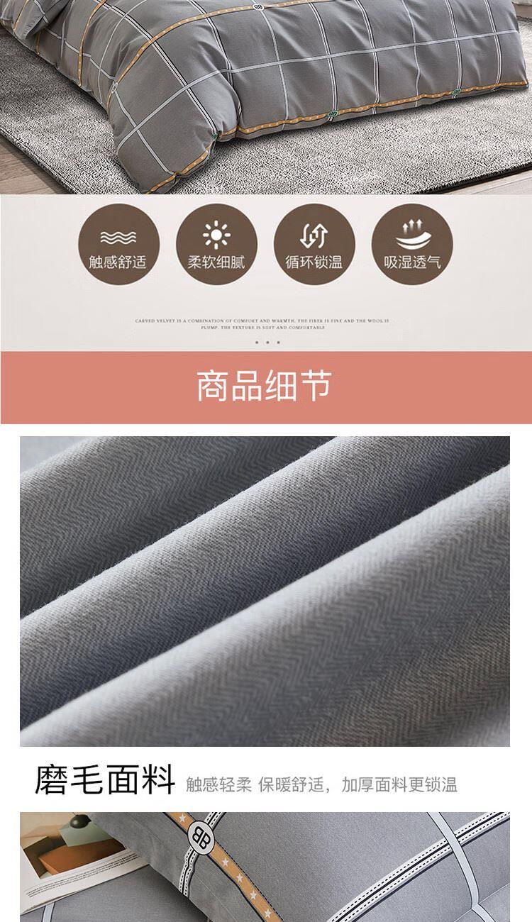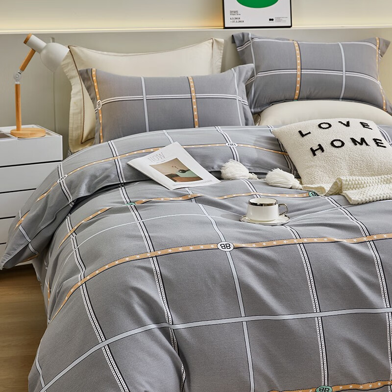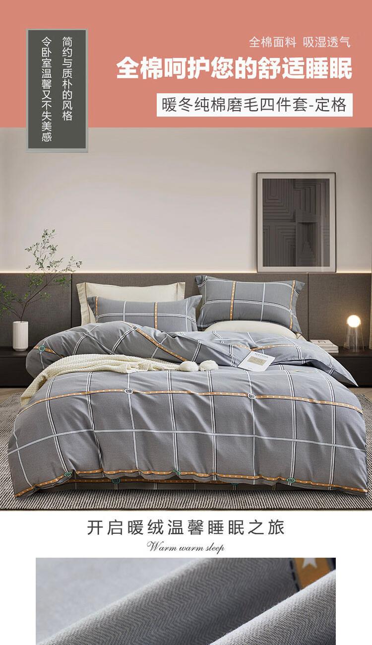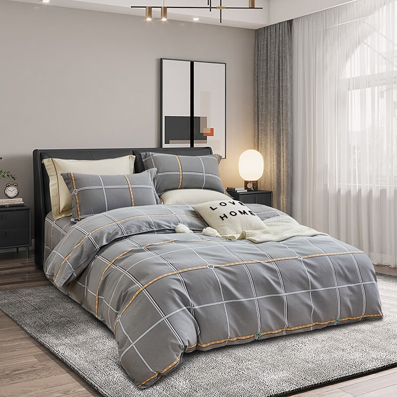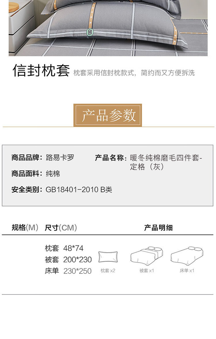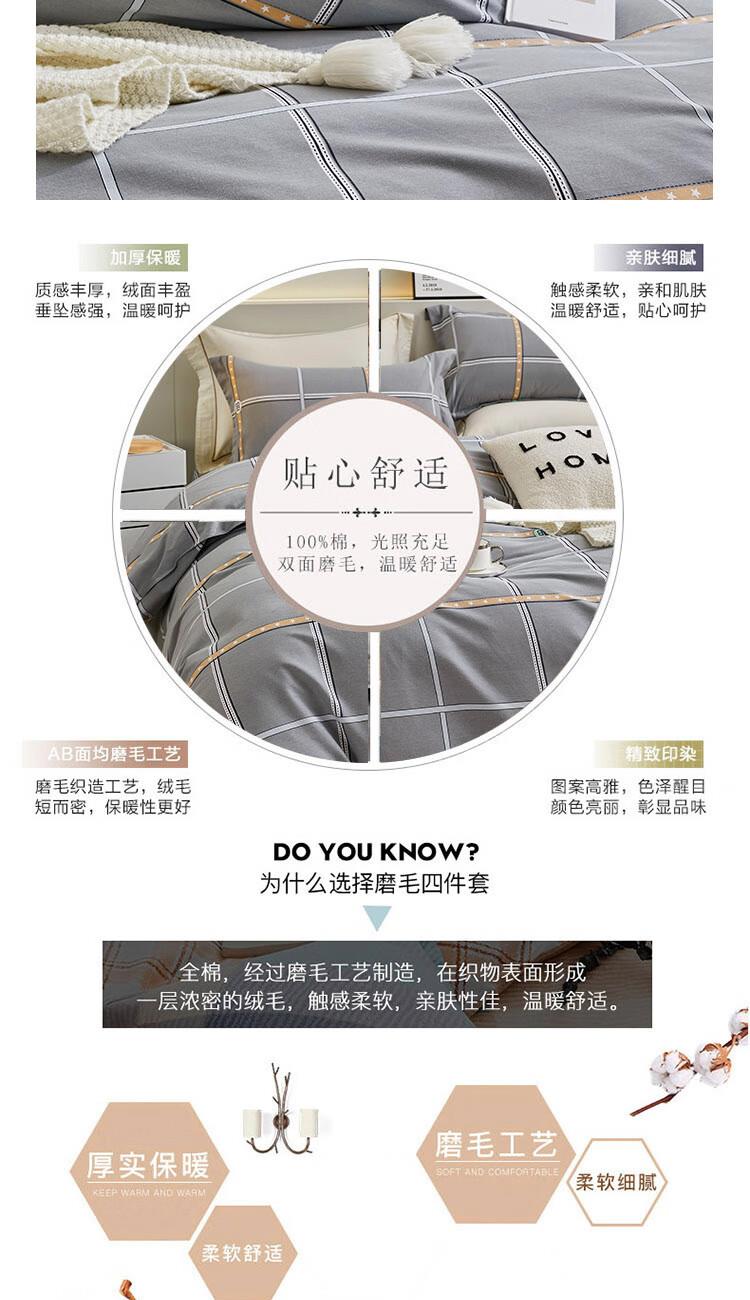 路易卡罗纯棉磨毛四件套-定格(灰)LK-6323