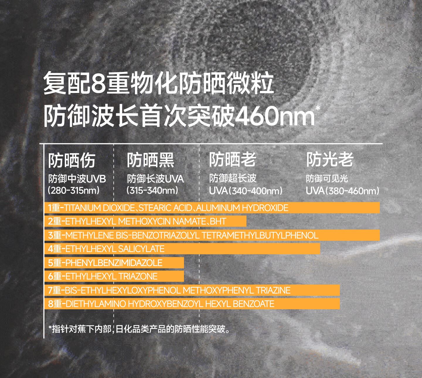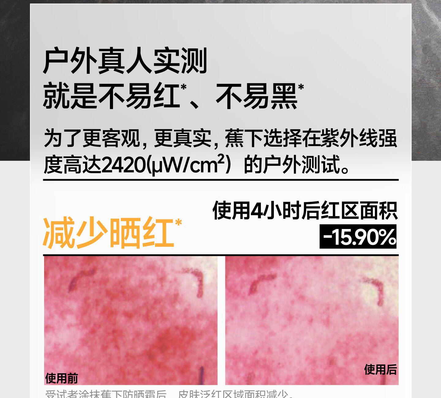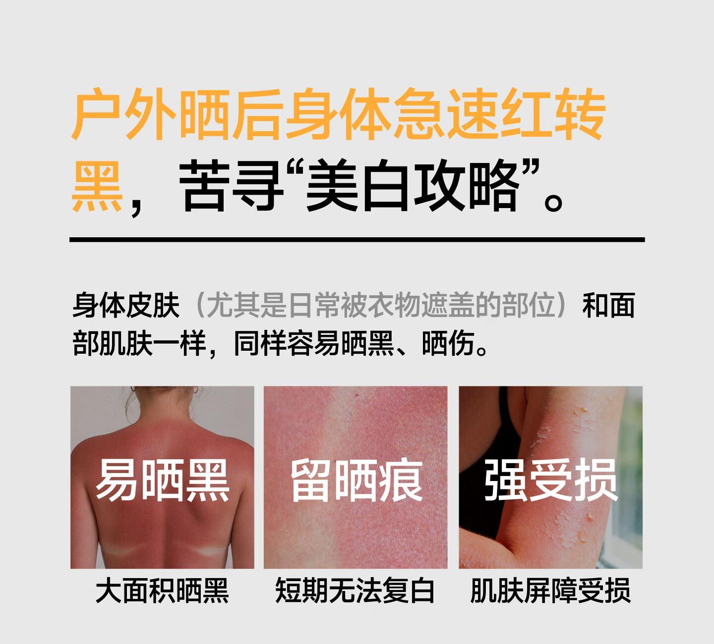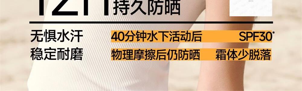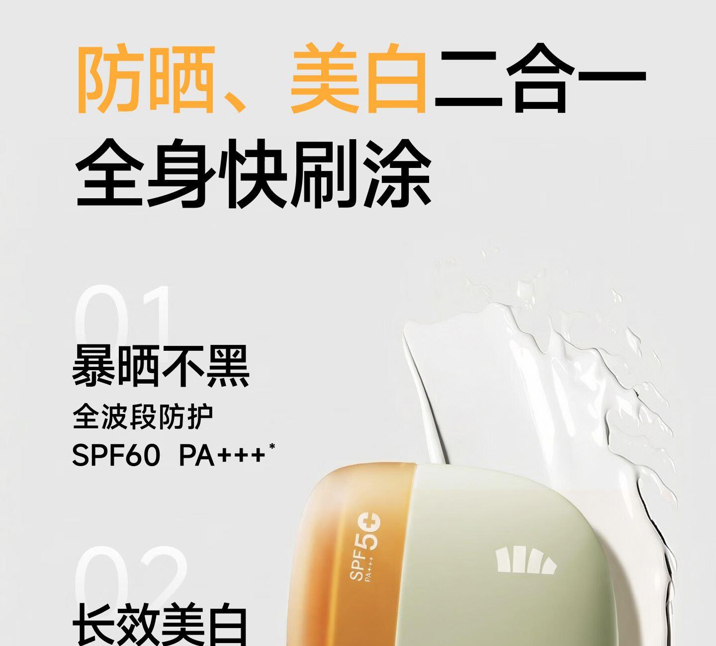 防晒美白、免手涂抹复配双重美白成分、一涂就亮持久焕白12h持久防晒、高能阻光暴晒不黑