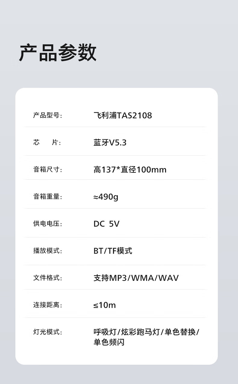 飞利浦TAS2108低音炮氛围灯桌面小音箱