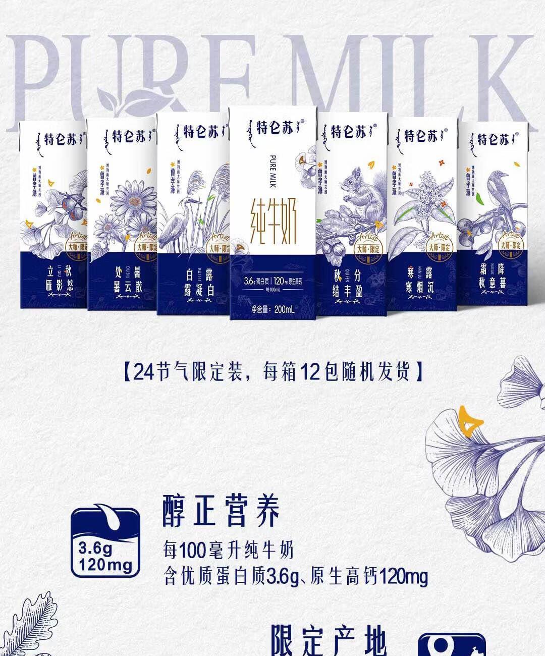 特仑苏有机纯牛奶全脂灭 菌乳利乐苗条装12*250ml(沙漠有机升级版)