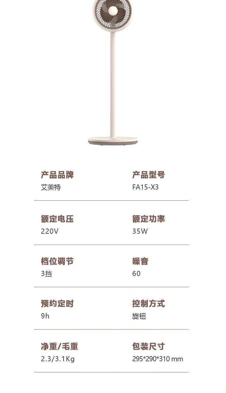 额定电压:220V 额定频率:50HZ 额定功率:35W 档位调节:三档 控制方式:机械 毛重:3.1kg 净重:2.3kg 包装尺寸:295*290*310 mm 条 形 码:6914621256651