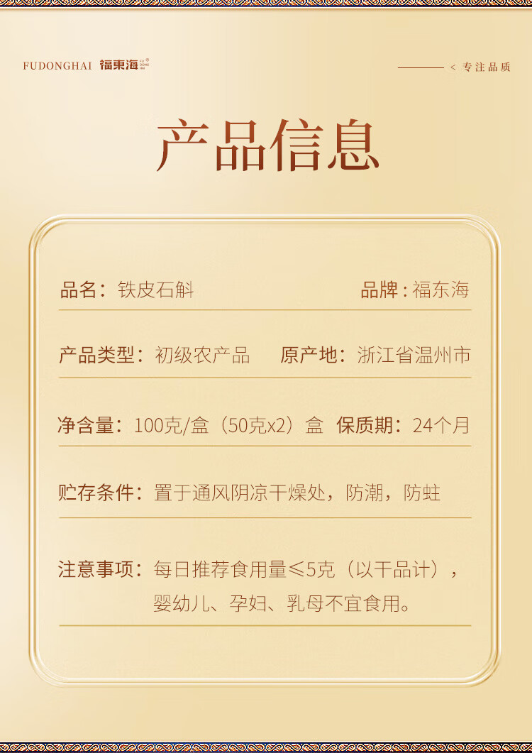 【福东海】铁皮石斛100克(50克(5克x10袋)x2)/盒