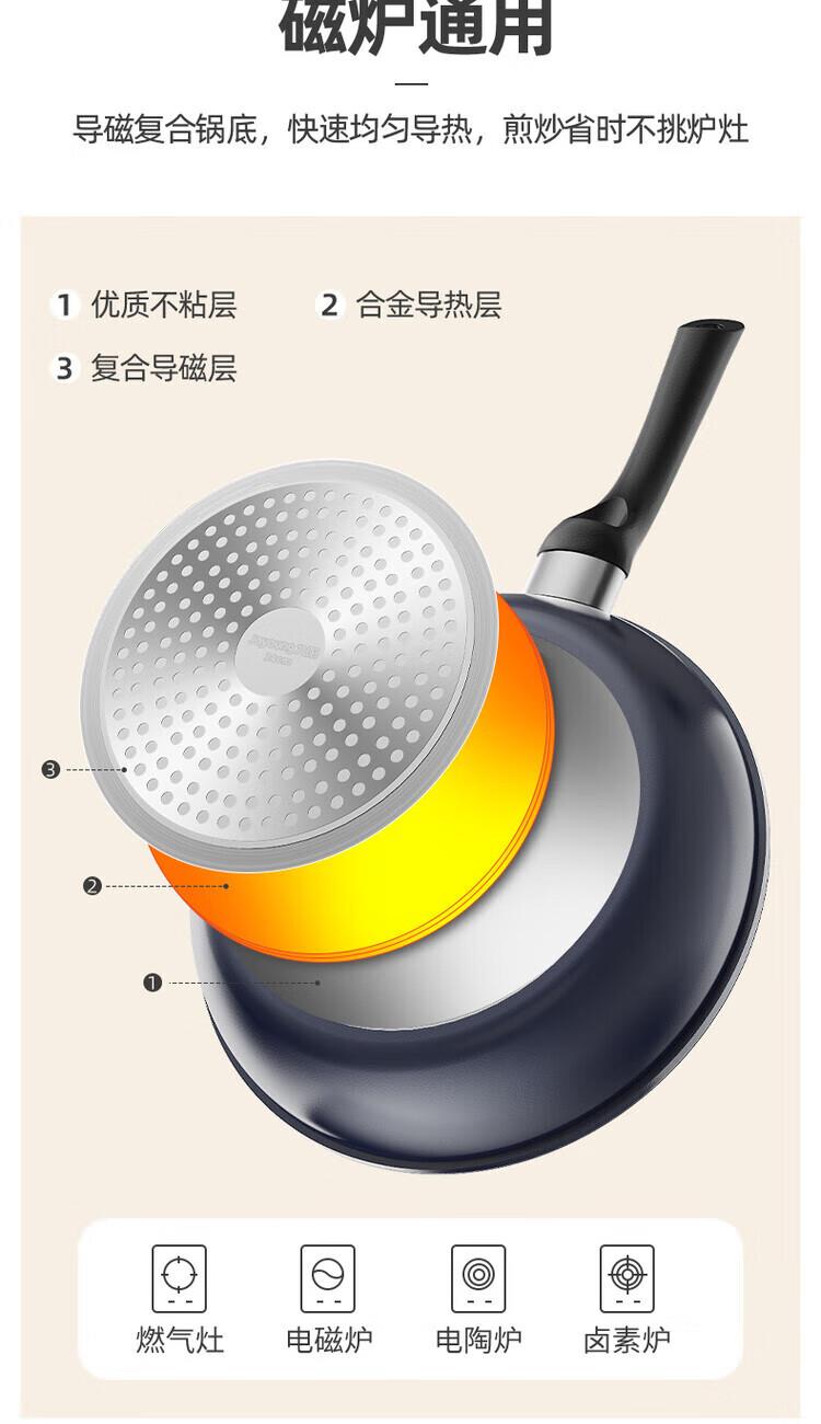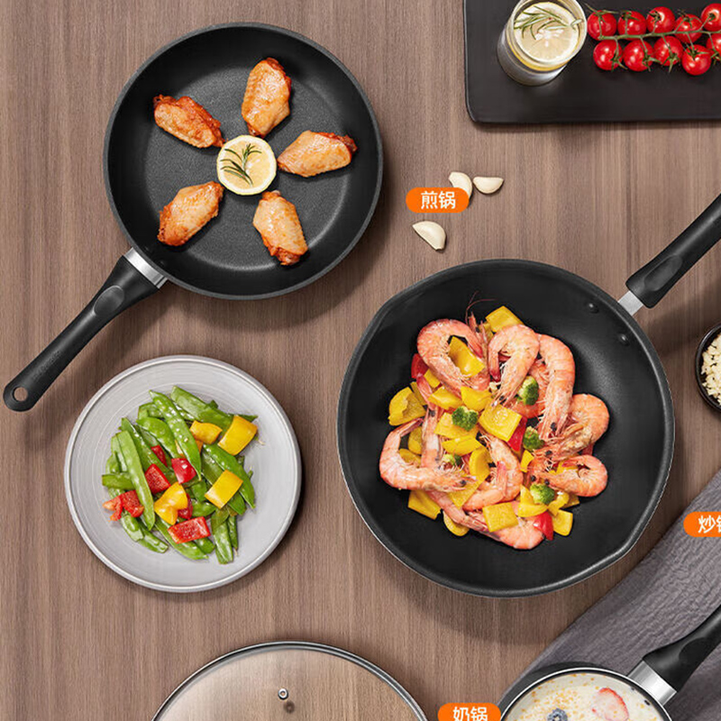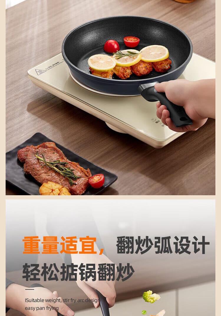 1、食品级不粘,翻炒弧形设计,专锅专用 2、一锅多用,满足全家需求 5、清油少烟,不粘,一冲即净。 6、不挑炉灶,好锅多用。 7、口径:炒锅28CM 煎锅24CM 奶锅16CM 8、环保包装,一件4台