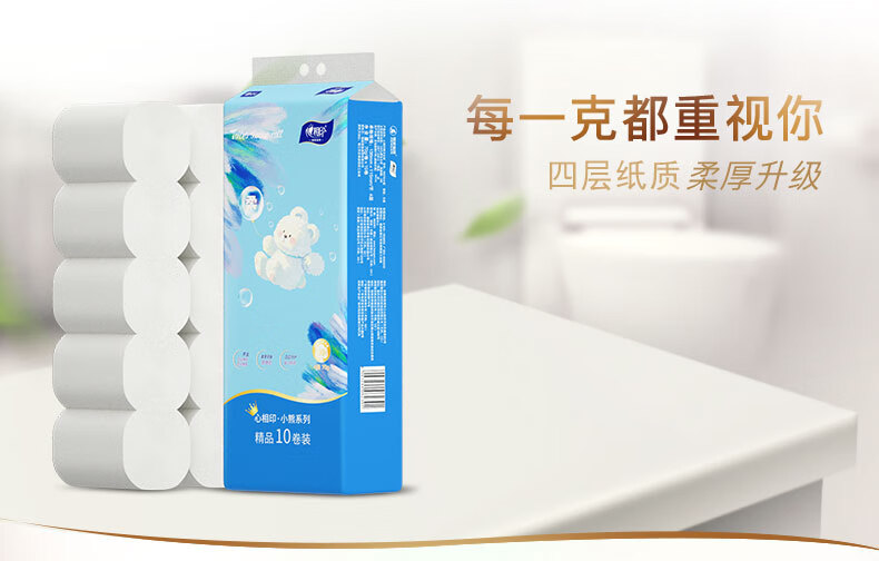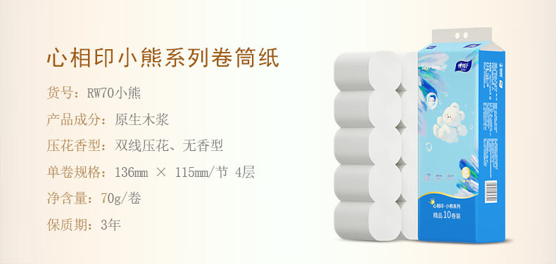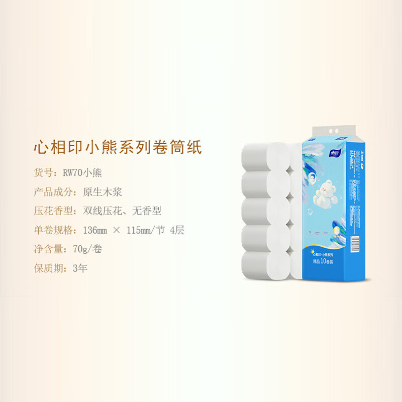 RW70四层无芯卷纸心相印小熊x70克x10卷/提