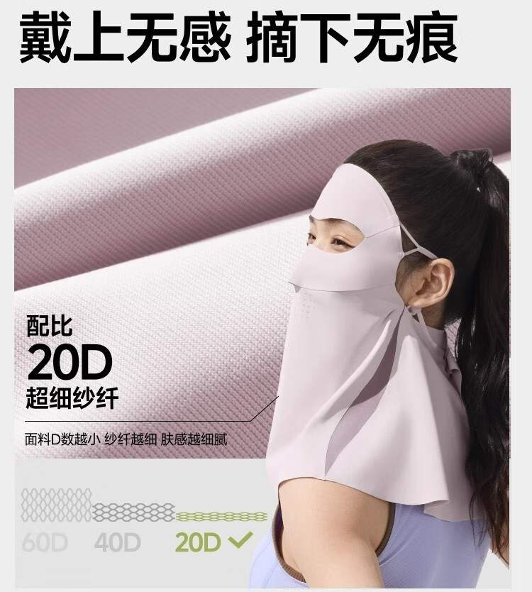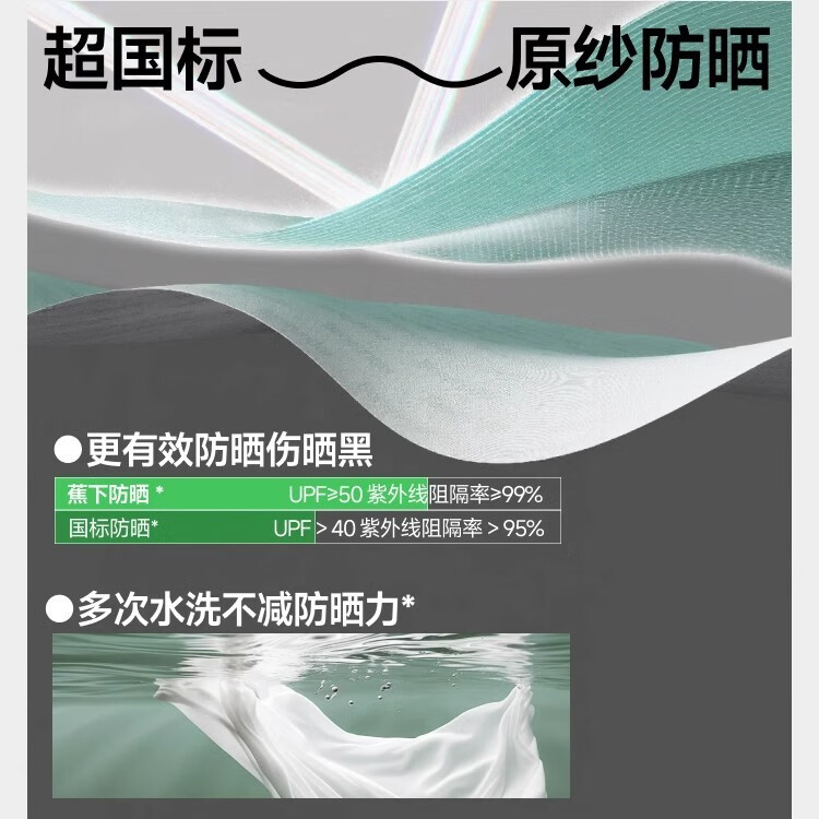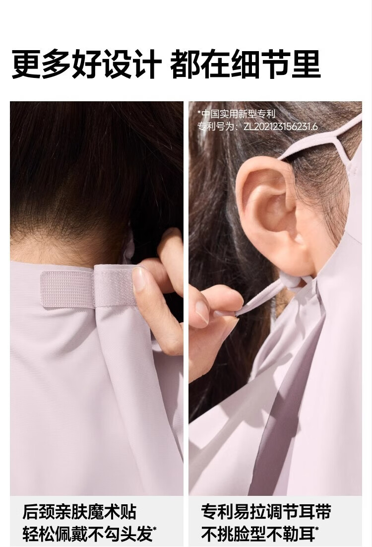 UPF50+原纱防晒、水洗不减防晒力 冰丝面料凉感升级 隐形防滑条佩戴更稳固