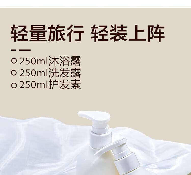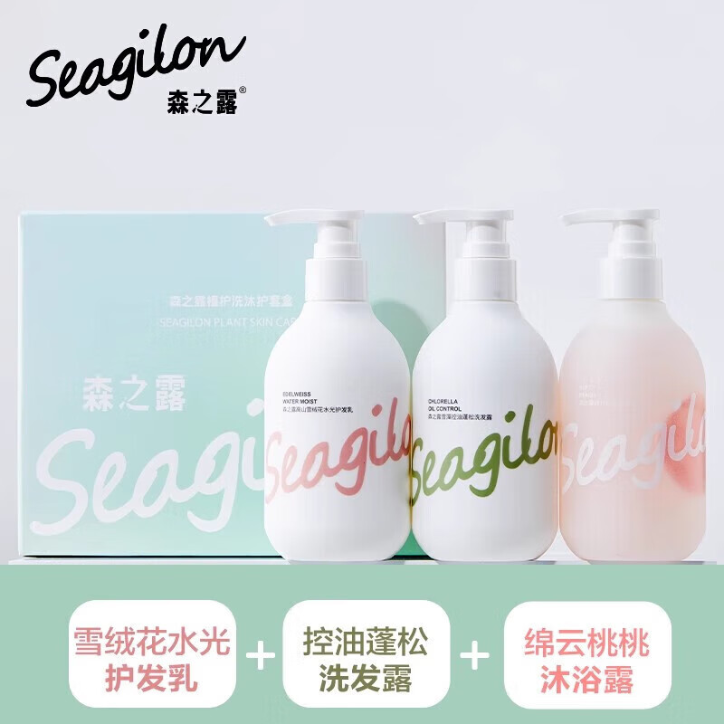 【套装配置】(香型随机/新老包装随机) 1.森之露绵云桃桃沐浴露250ml*1 2.森之露雪藻控油蓬松洗发露250ml*1 3.施卡西珊瑚绒吸水速干加厚干发帽*1 4.樱之素牙刷单支装*1 5.参半倍感清新牙膏20g*1 6.洁丽雅臻品长绒棉毛巾70g*1 7.SEVEN PLUS绿茶香氛润肤露30ml*1 8.柏缇系列精美彩盒*1