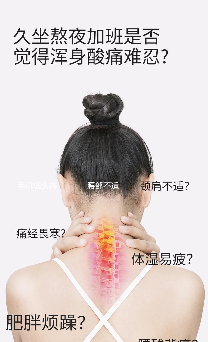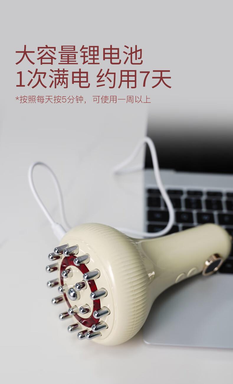 续航:2个循环,开机默认模式 默认工作时间:30min(自动关闭) 充电时间:4小时±0.5小时 充电电压:3.7V 额定功率:5w 充电接口:Type-C 电池容量:1200毫安 执行标准:GB4706.1-2005/GB4706.10-2008 配件:主机*1,艾草精油*5,充电线*1,说明书*1,穴位图