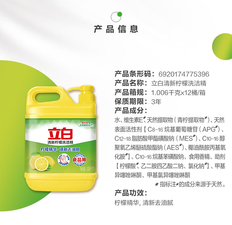 立白清新柠檬洗洁精1.006千克桶