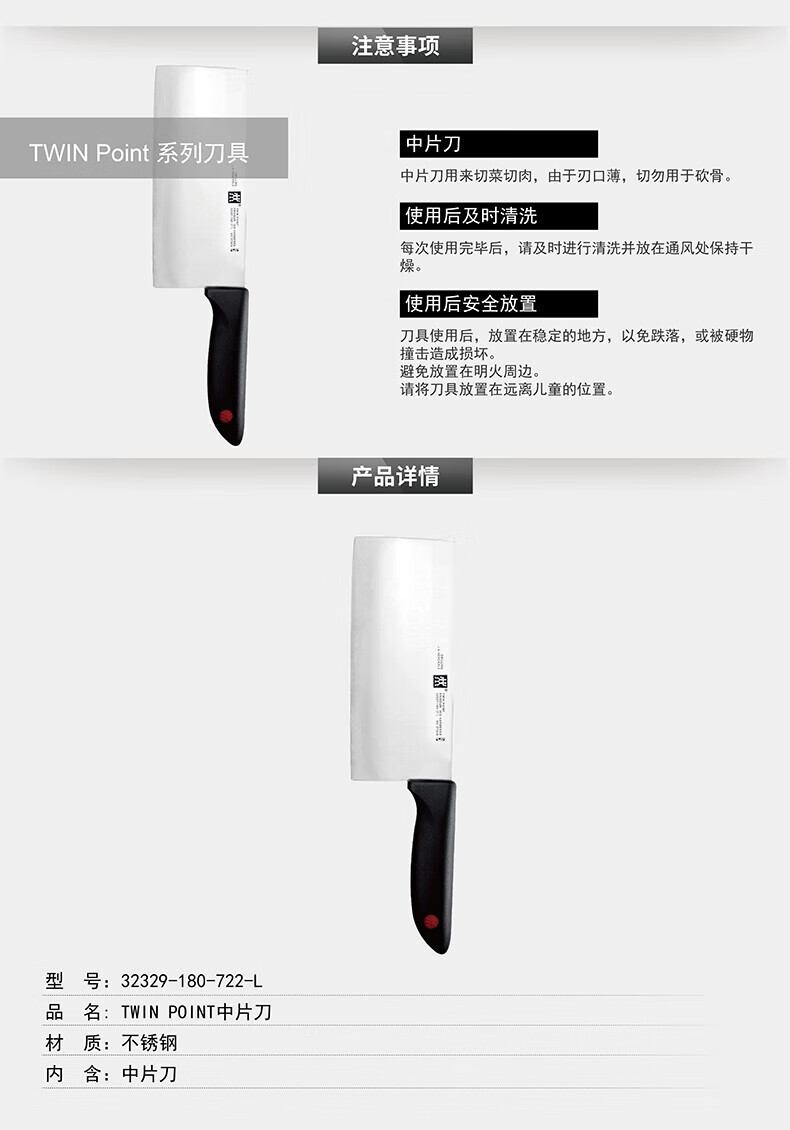 产品材质:马氏体不锈钢 产品参数:7寸 包装尺寸:36×11.5×3cm 装 箱明细:24