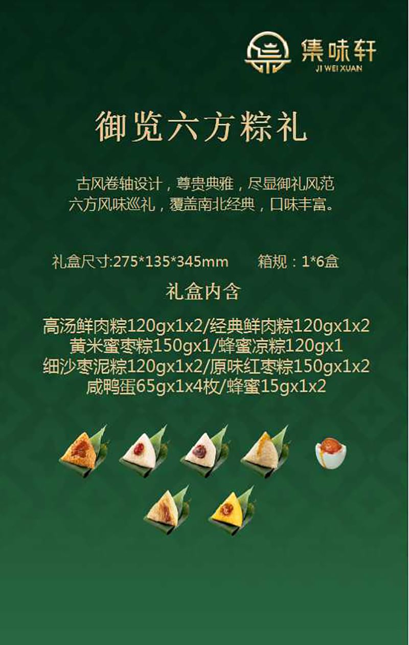 高汤鲜肉粽120gx1x2 经典鲜肉粽120gx1x2 黄米蜜枣粽150gx1 蜂蜜凉粽120gx1 细沙枣泥粽120gx1x2 原味红枣粽150gx1x2 咸鸭蛋65gx1x4枚 蜂蜜15gx1x2