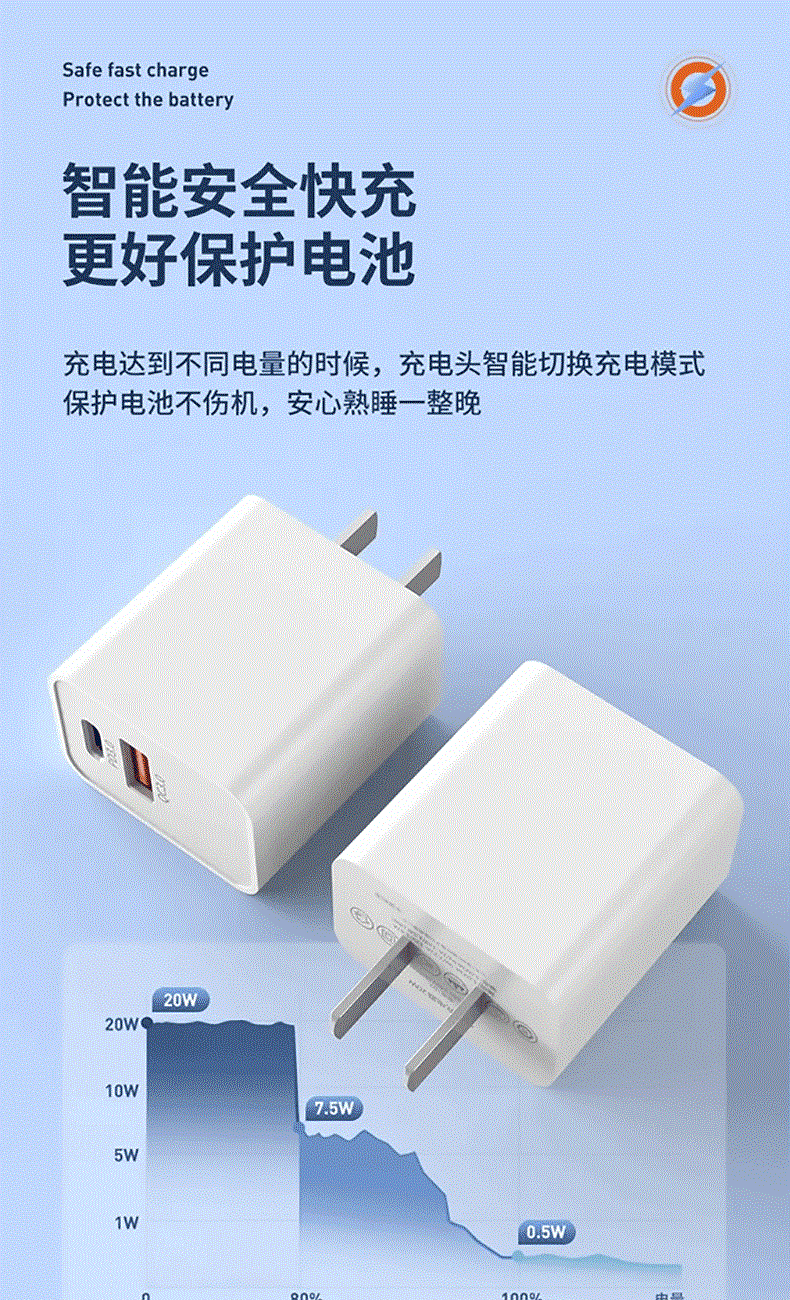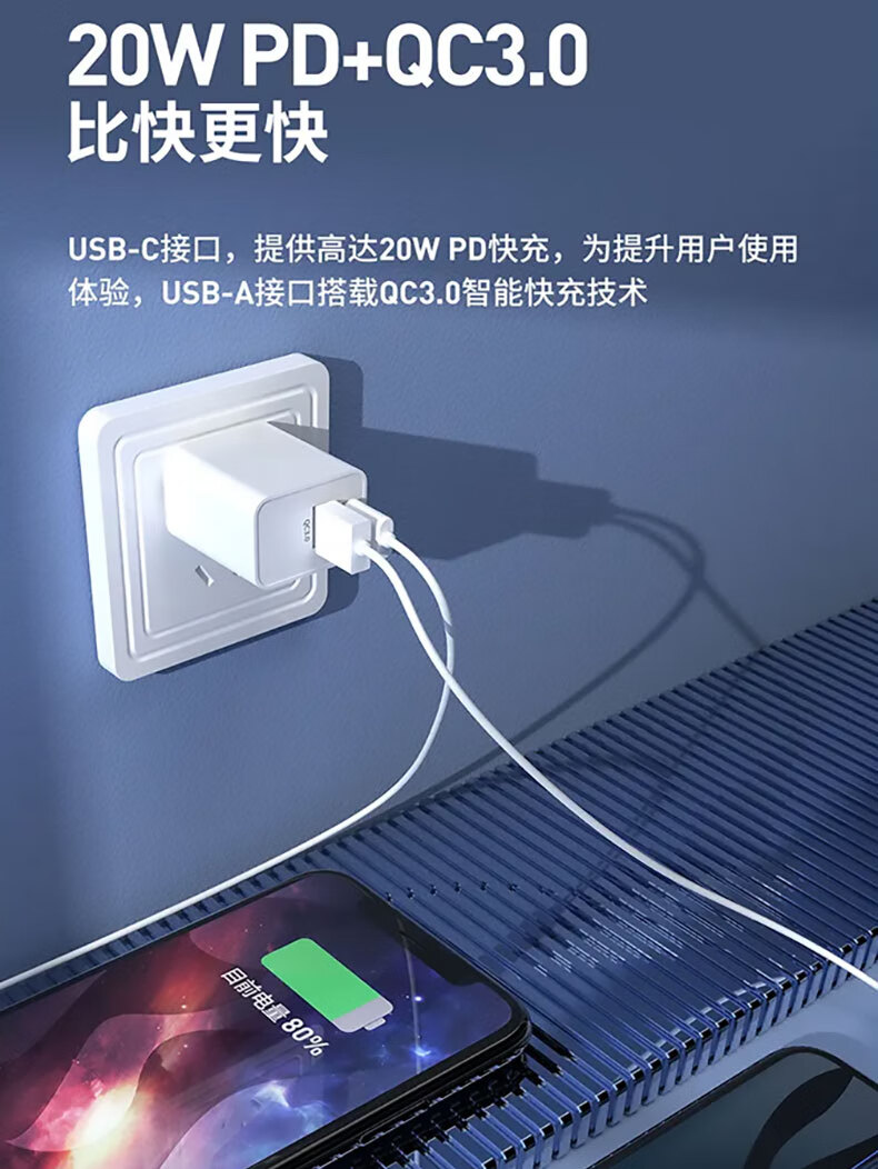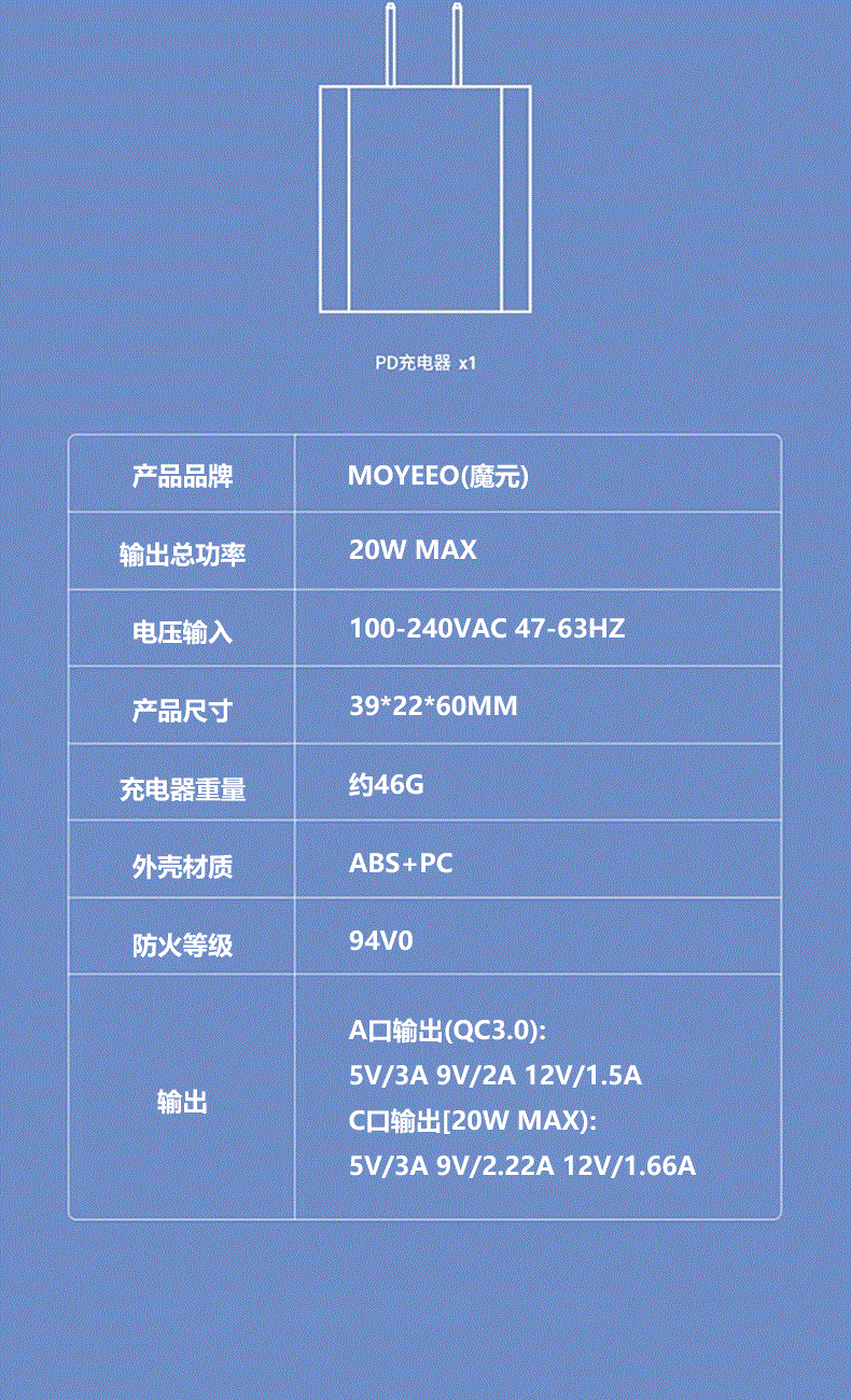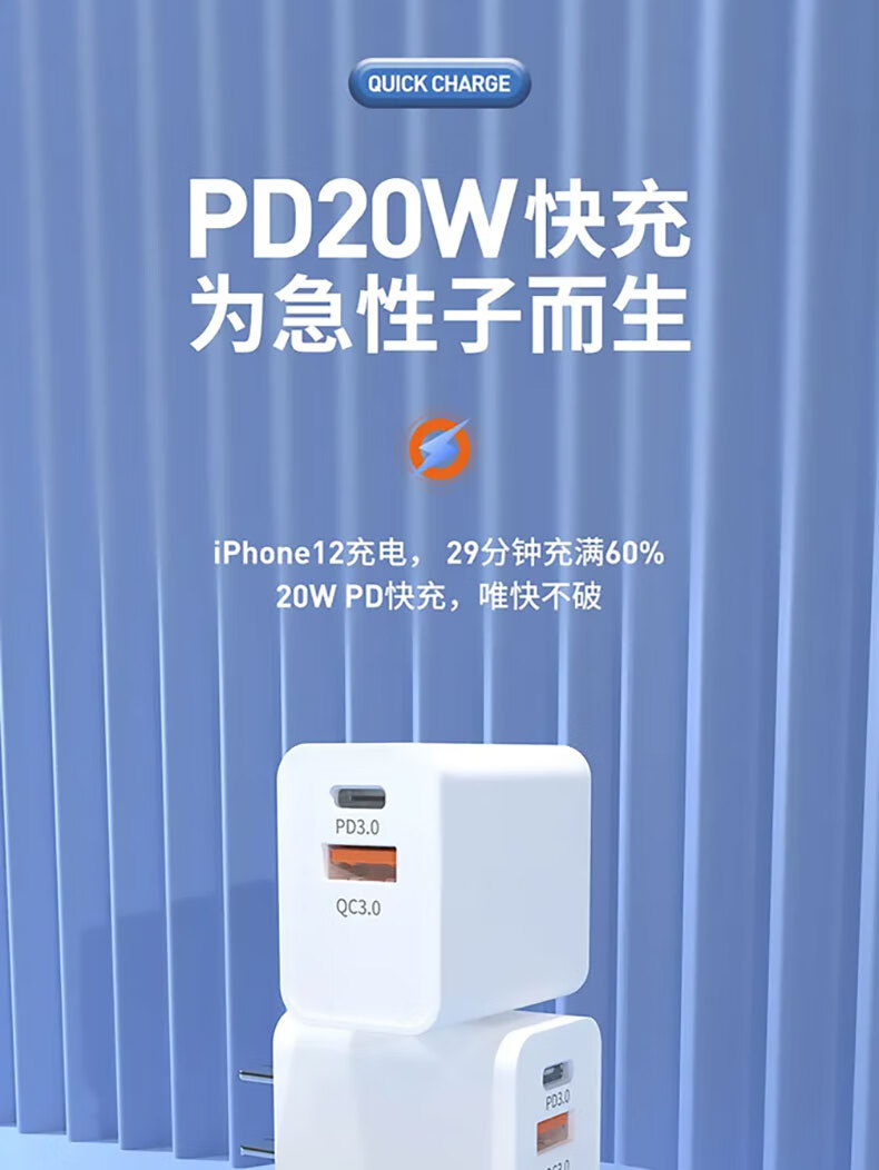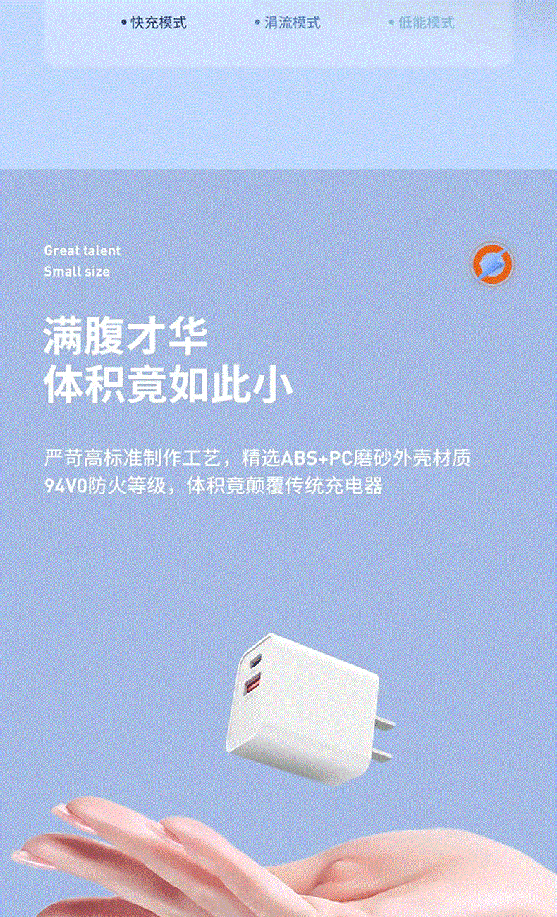 型号:D01(S6-QD3.0-SM A+C) 颜色:白色 材质:ABS阻燃料 USB-A输出:18W TYPE-C输出:20W(MAX) 双口同时输出:15W 产品尺寸:43*26*46mm 包装尺寸:84.5*34.5*114mm 产品重量:70g