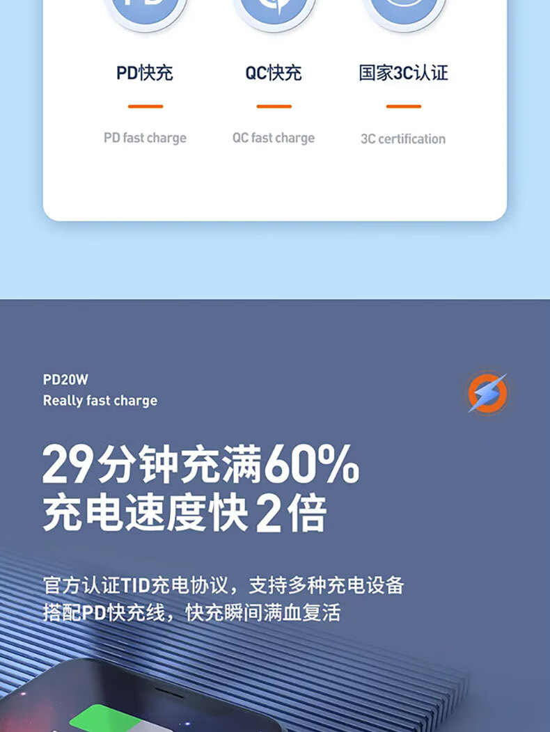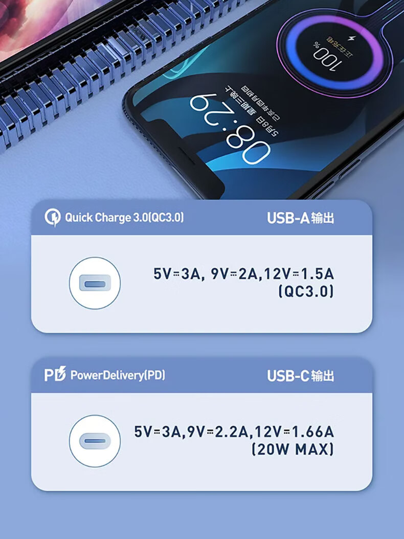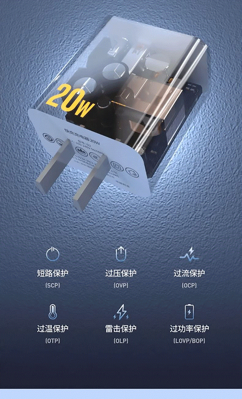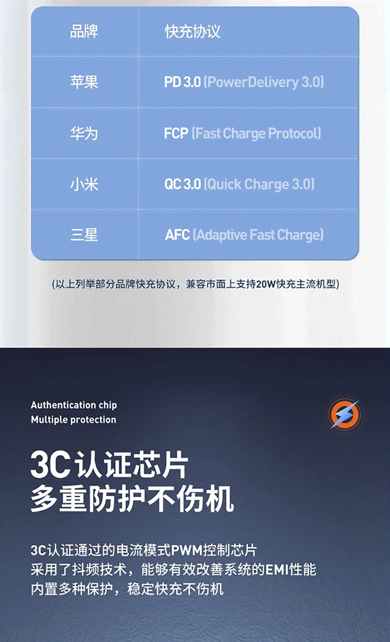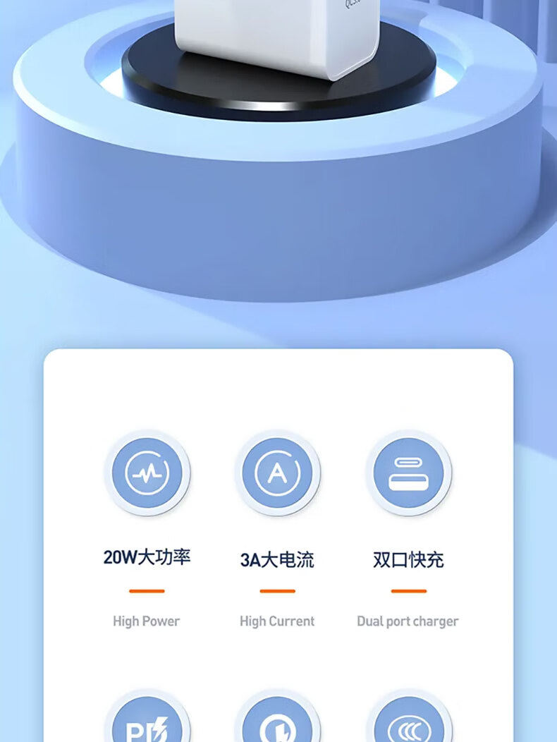 型号:D01(S6-QD3.0-SM A+C) 颜色:白色 材质:ABS阻燃料 USB-A输出:18W TYPE-C输出:20W(MAX) 双口同时输出:15W 产品尺寸:43*26*46mm 包装尺寸:84.5*34.5*114mm 产品重量:70g
