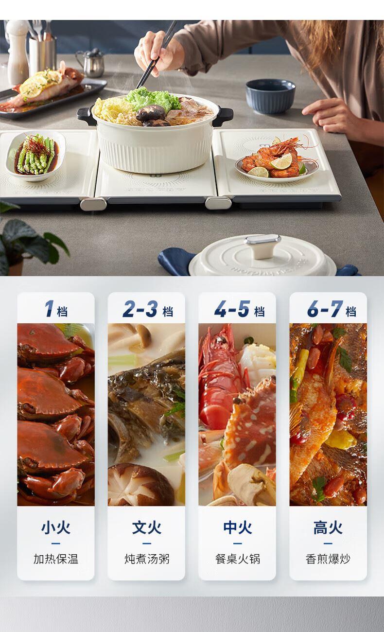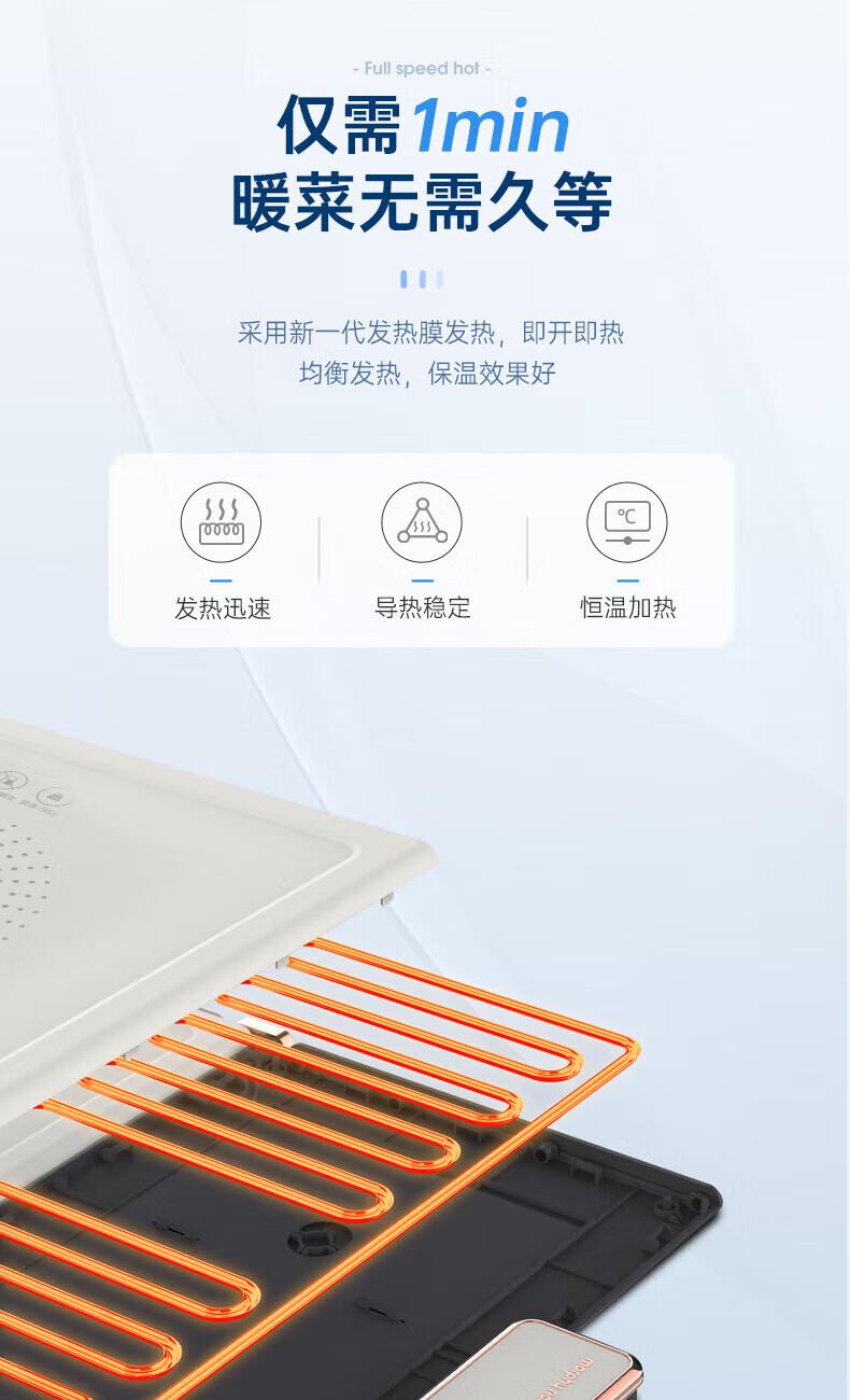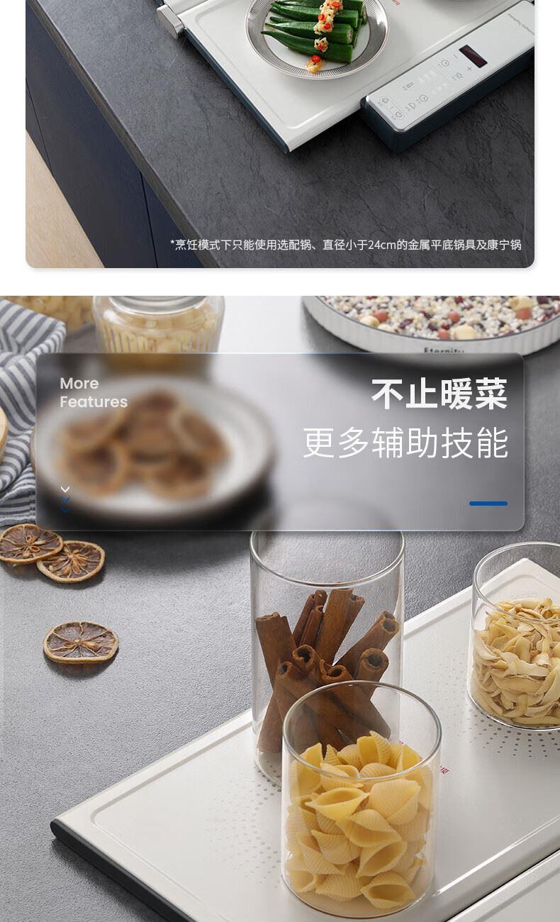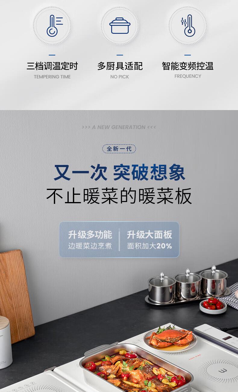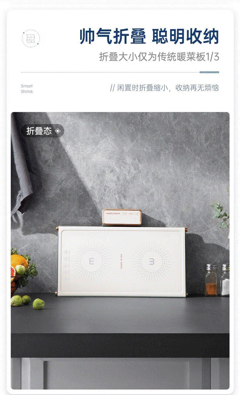 功率:330W 重量:4.35kg 装 箱数:1台 /箱 产品尺寸: 630*380*12 外箱尺寸: 483*146*390 颜色:白色 1、折叠设计,可拆电源线 2、智能触控显示温度,三段调温暖菜 3、六盘容量,三板一抹全干净 4、2.5kg轻巧,智能定时保温 5、可暖各种容器,1分钟全盘速热