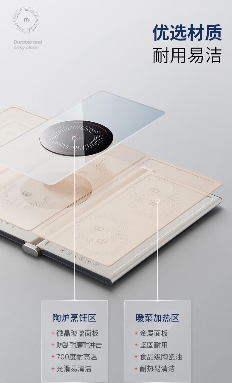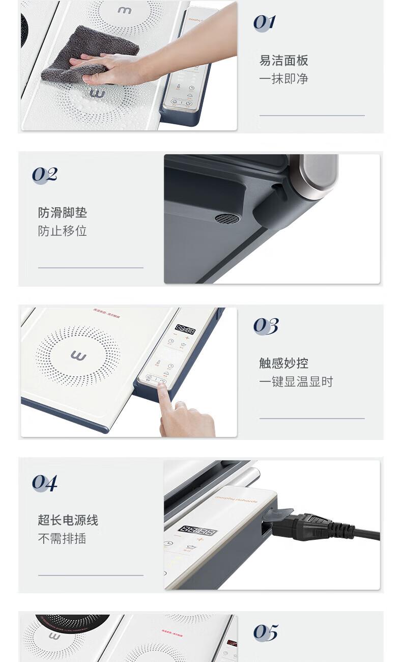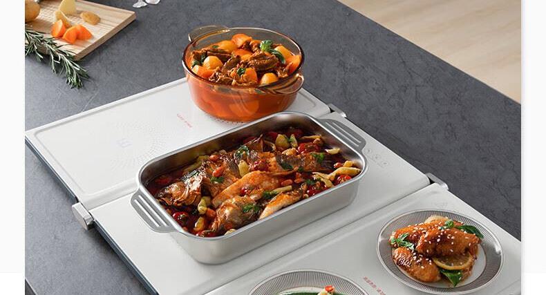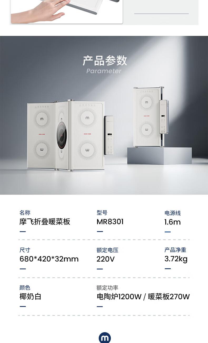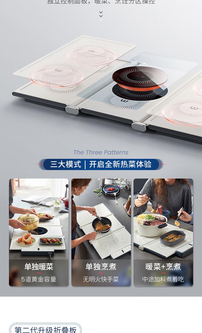 功率:330W 重量:4.35kg 装 箱数:1台 /箱 产品尺寸: 630*380*12 外箱尺寸: 483*146*390 颜色:白色 1、折叠设计,可拆电源线 2、智能触控显示温度,三段调温暖菜 3、六盘容量,三板一抹全干净 4、2.5kg轻巧,智能定时保温 5、可暖各种容器,1分钟全盘速热