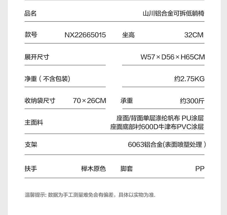牧高笛山川铝合金可拆低躺椅NX22665015