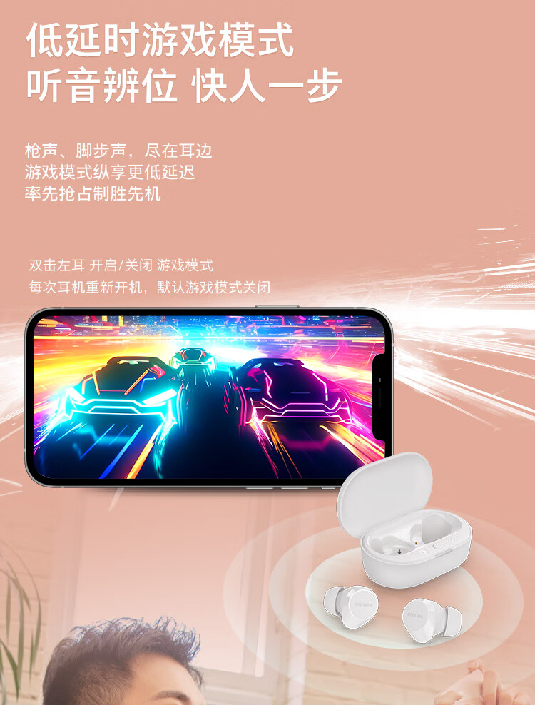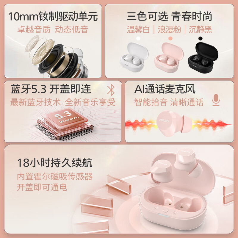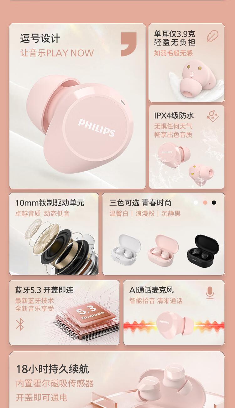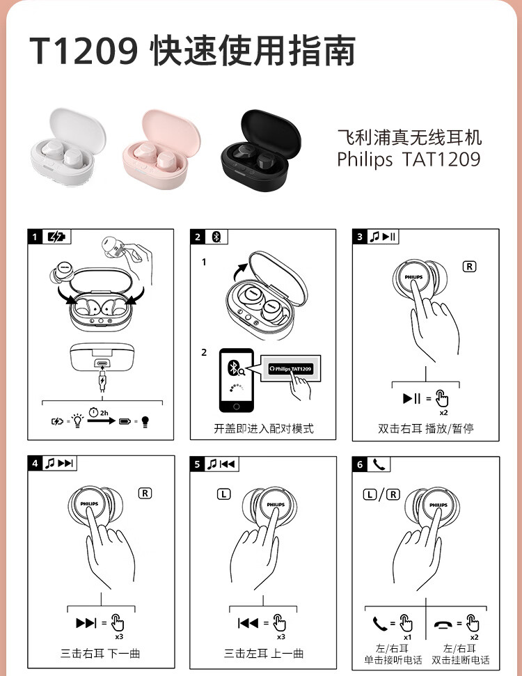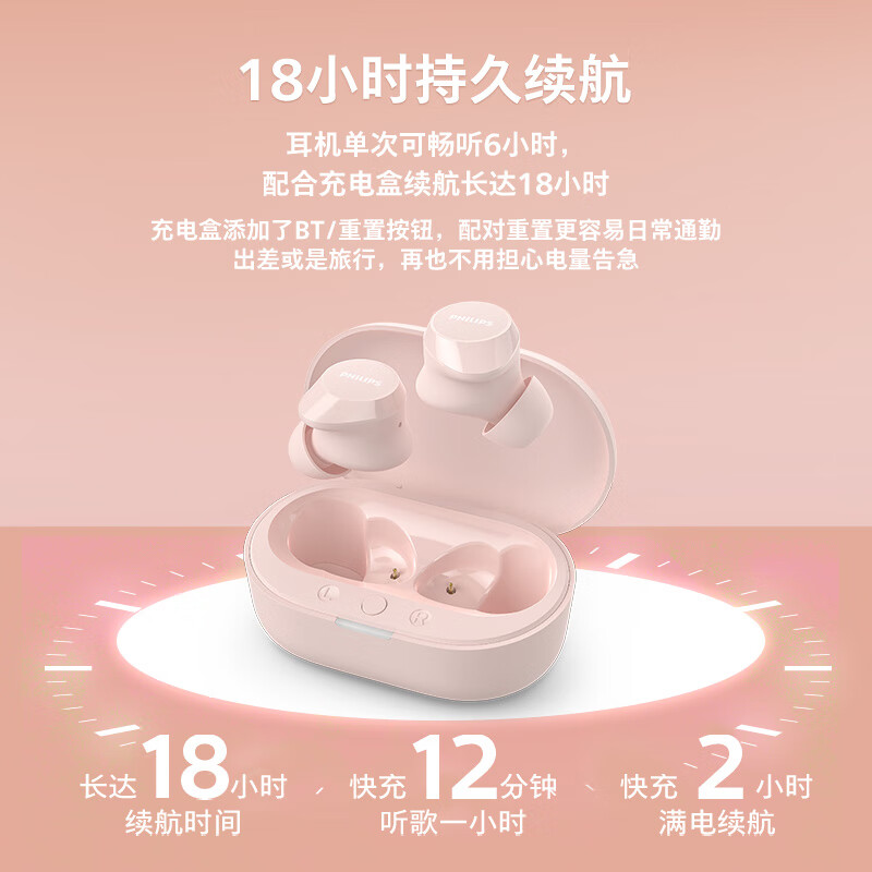 飞利浦(PHILIPS)TAT1209 豆式入耳真无线蓝牙耳机