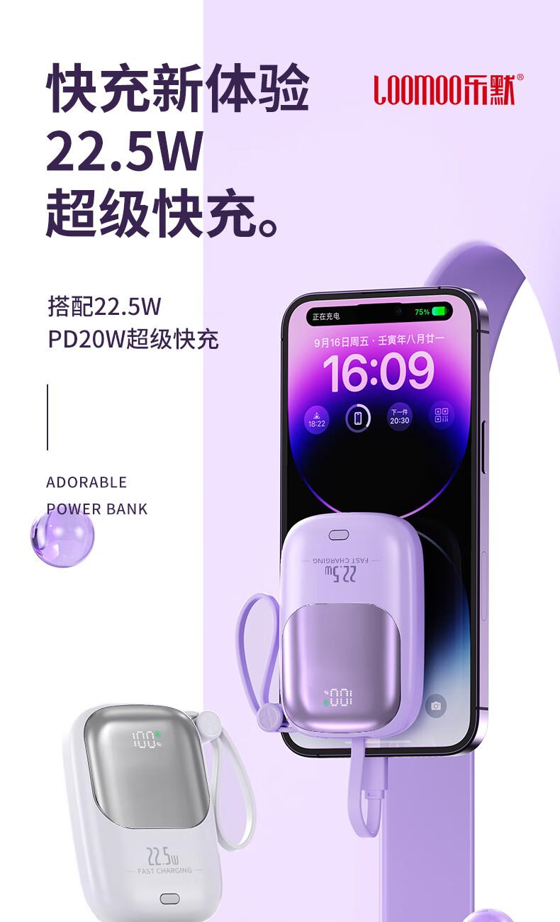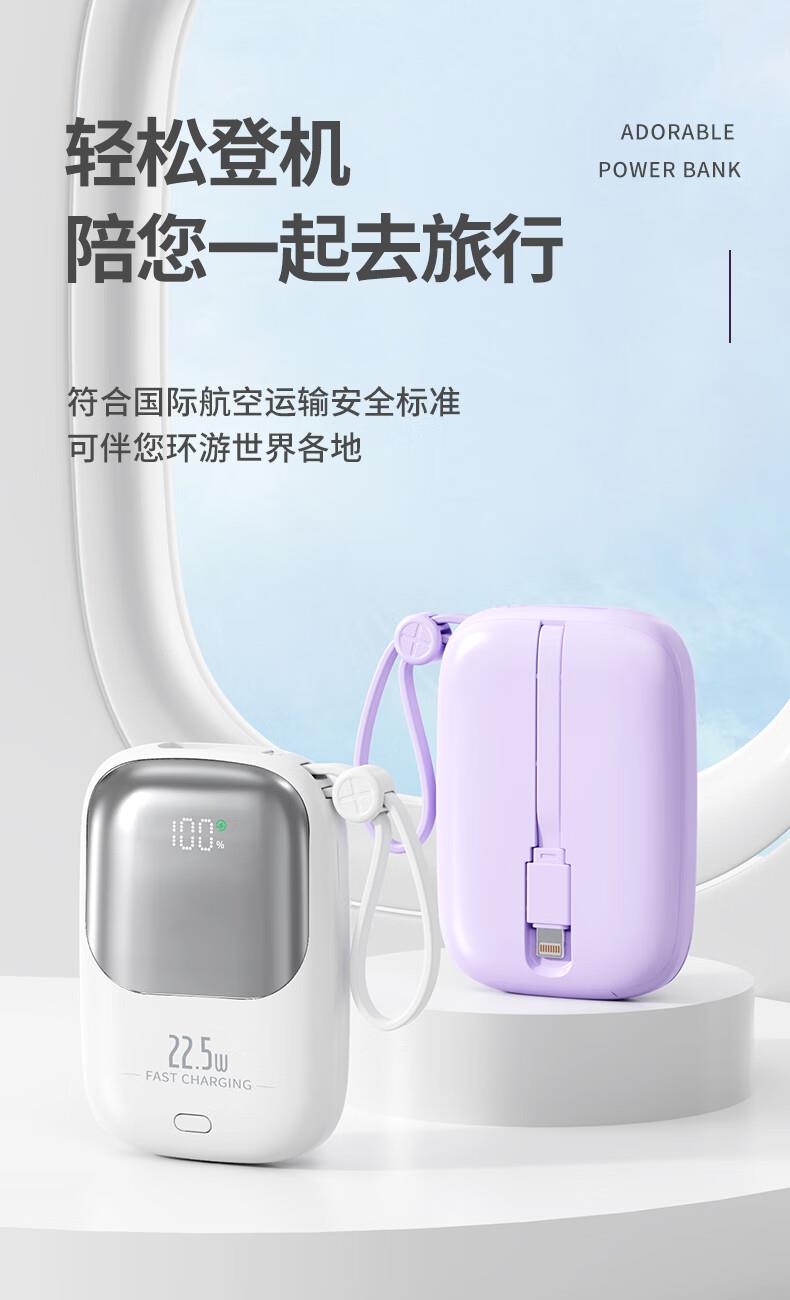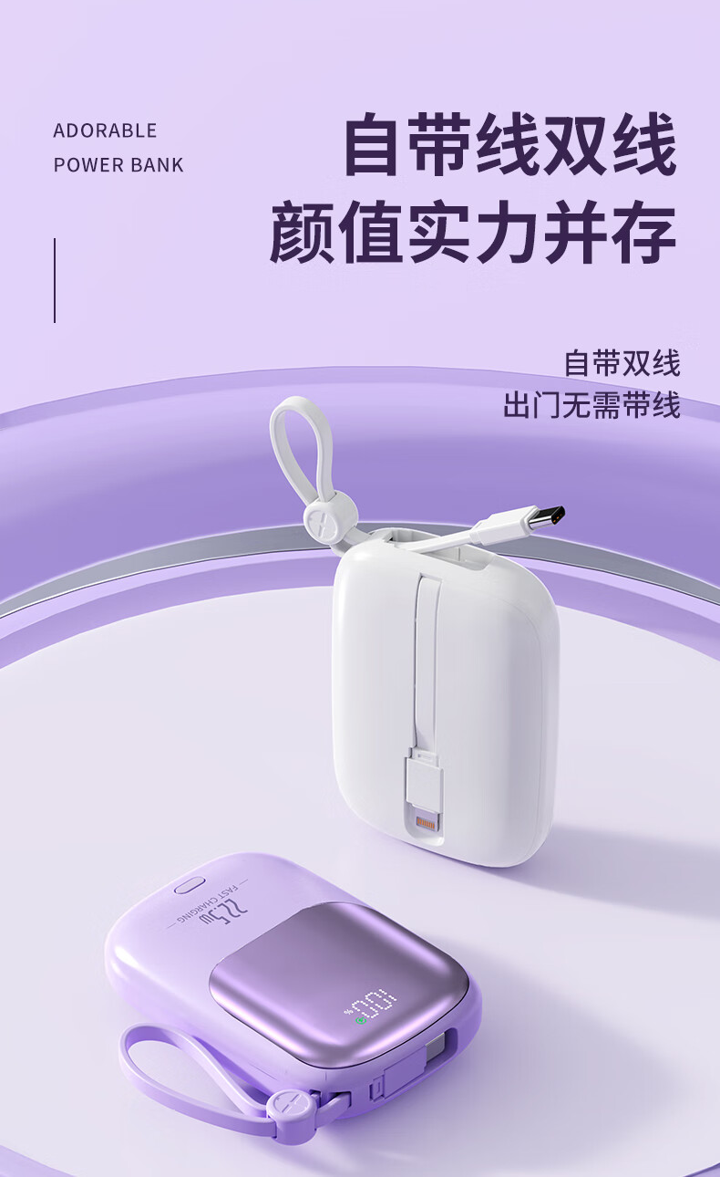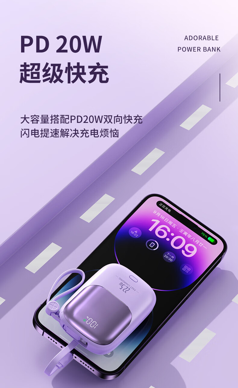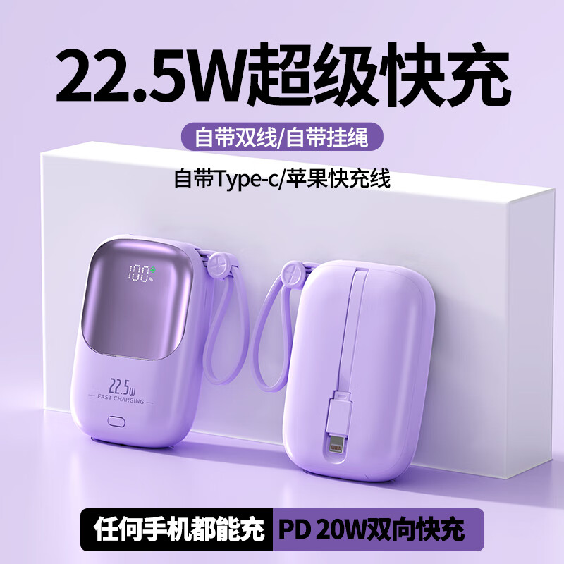 产品型号:LPB-C55 颜 色: 紫色、黑色、白色 材质:ABS+PC 电芯容量:10000毫安 电芯型号:21700*2 输入:Type-C输入:5V3A9V2A12V1.5A 输出:Type-C输出:5V/3A9V2.2A12V1.6A Lightning输出:5V/2.4A9V22A12V1.5A 京东链接:https://item.jd.com/10115157895114.html 69码:6972991656570