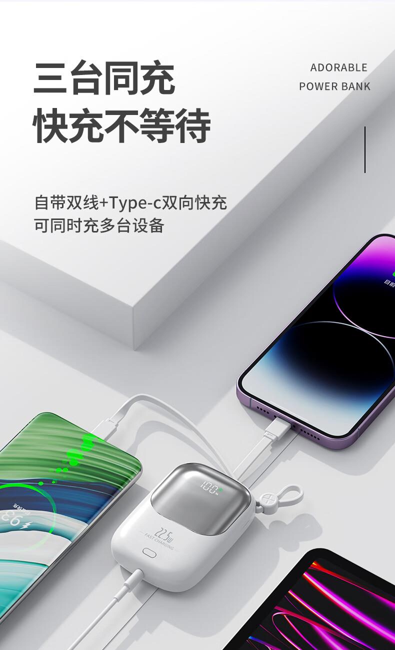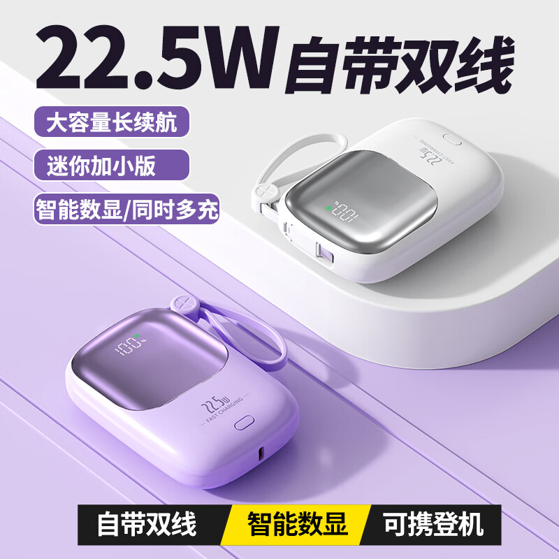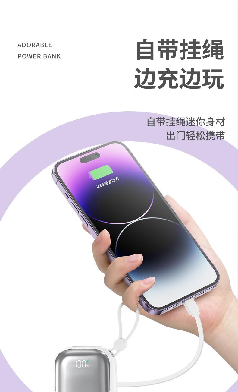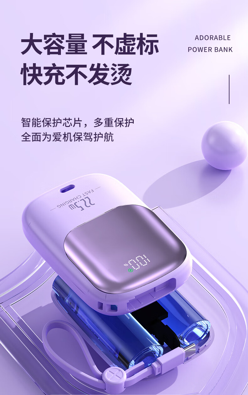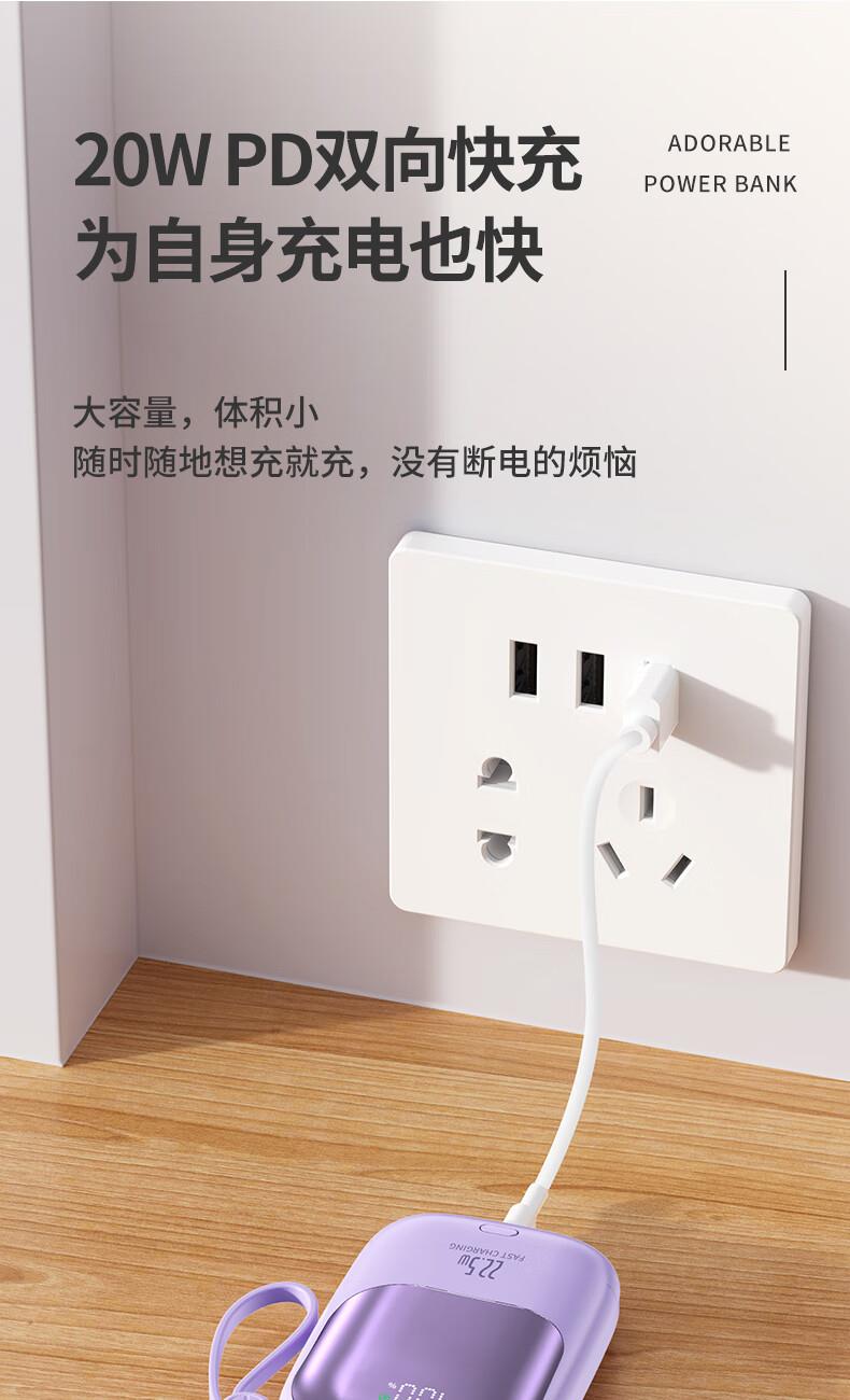 产品型号:LPB-C55 颜 色: 紫色、黑色、白色 材质:ABS+PC 电芯容量:10000毫安 电芯型号:21700*2 输入:Type-C输入:5V3A9V2A12V1.5A 输出:Type-C输出:5V/3A9V2.2A12V1.6A Lightning输出:5V/2.4A9V22A12V1.5A 京东链接:https://item.jd.com/10115157895114.html 69码:6972991656570