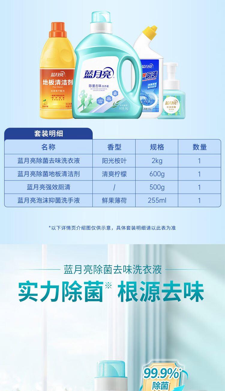 桉叶除 菌洗衣液2kg*1 除 菌地板清洁剂600g*1 强效厕清500g*1 鲜果薄荷泡沫洗手液255ml*1
