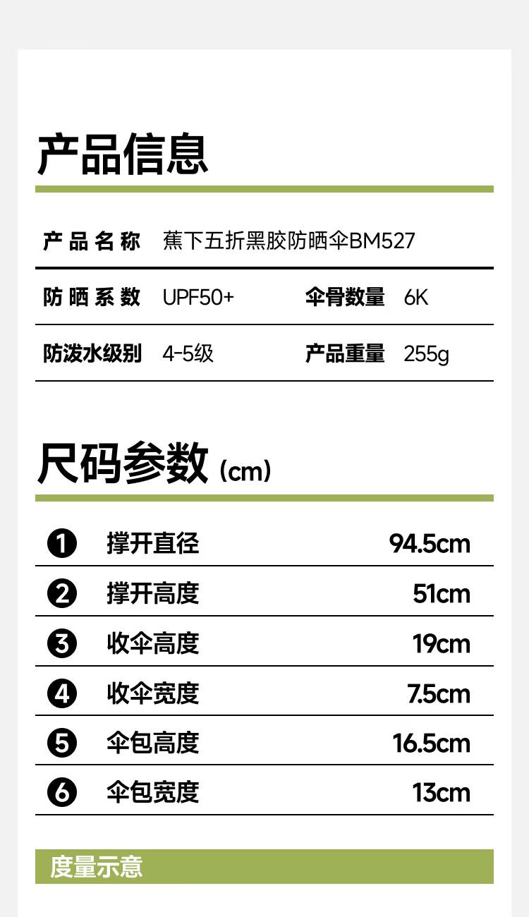 蕉下五折黑胶防晒伞BM527