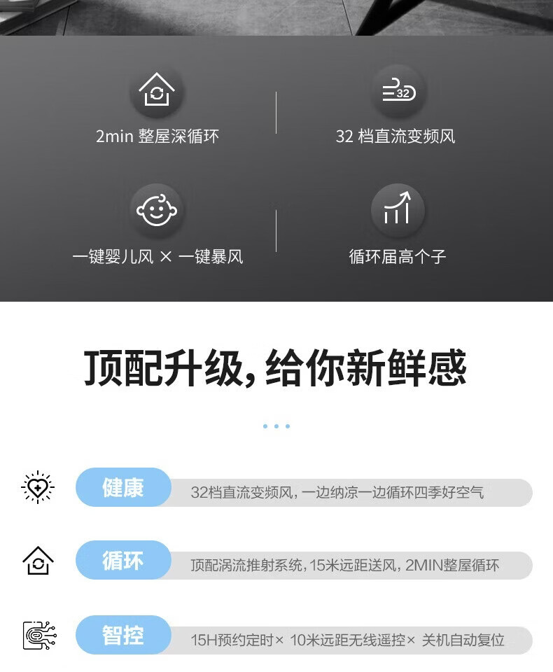 额定电压:24V---额定功率:28W 风扇档位:32档+婴儿风+一键暴风 控制方式:触控+遥控预约定时:15小时摇头范围:左右80°自动,上下80°自动 产品尺寸:331*331*955mm