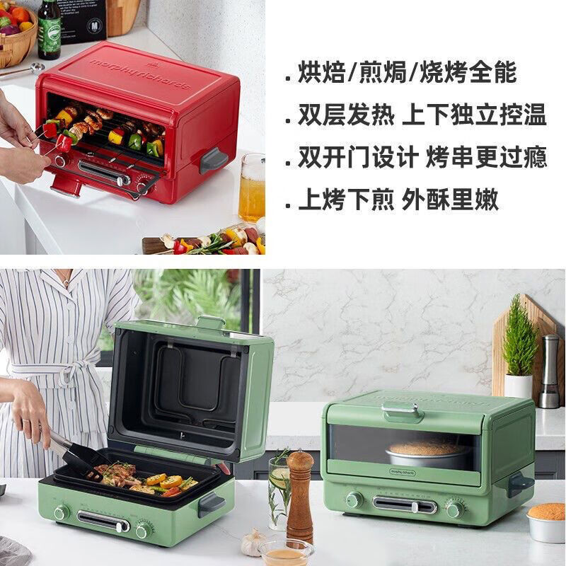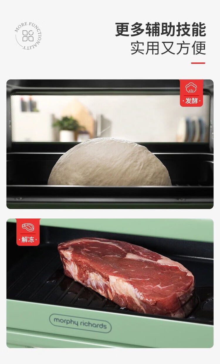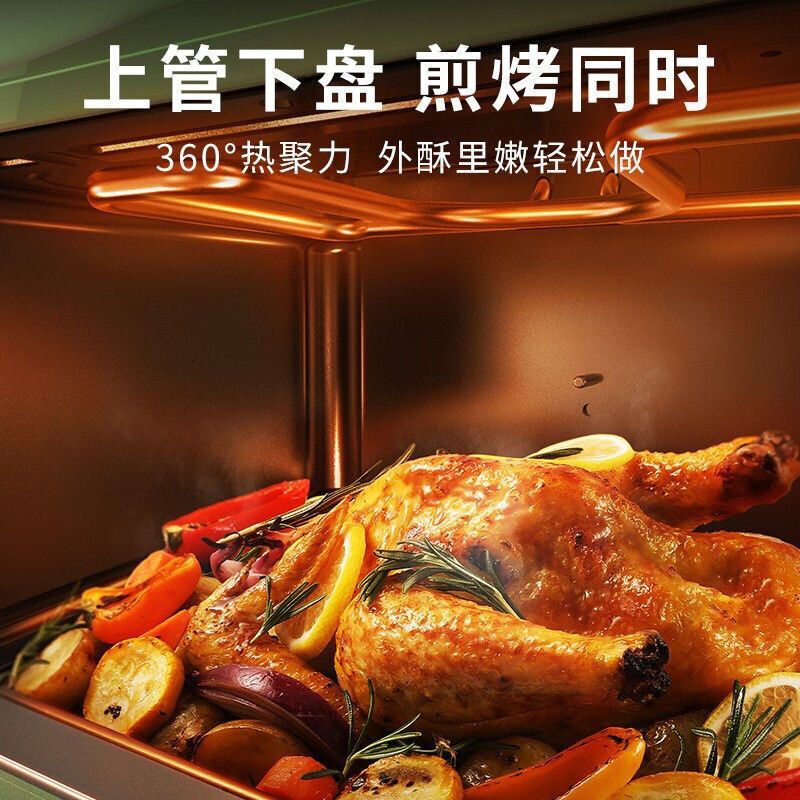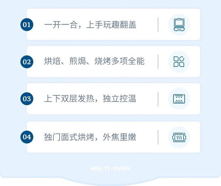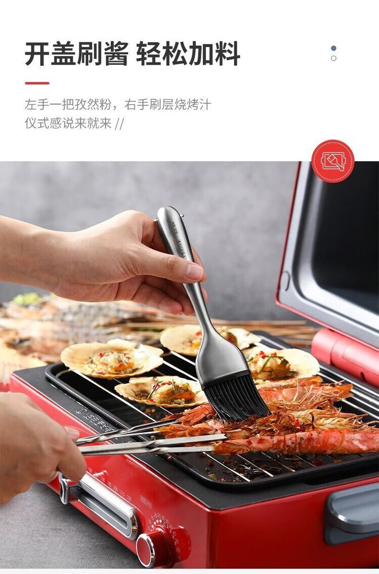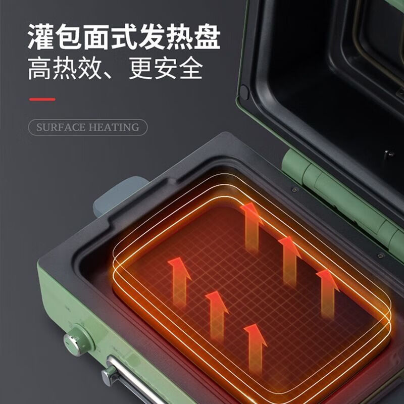 功率:1500W 重量:6.5kg 装 箱数:1台 /箱 产品尺寸: 351*307*299 外箱尺寸: 434*368*487 颜色:白色 1、面式发热盘,均衡高效受热 2、可翻盖的烤箱,内部清洁无死角 3、喷不粘油烤盘,轻油少烟味 4、电子式十档广域控温范围,可调40℃-230℃之间,控温精 准 5、跑马灯酷炫设计,0-60min灵敏定时 6、2000W大功率,高效发热,快速提供热量 7、烘煎烤,一机多用,实时变换