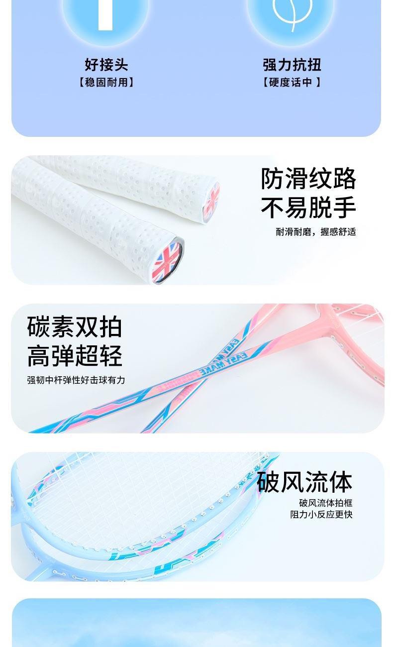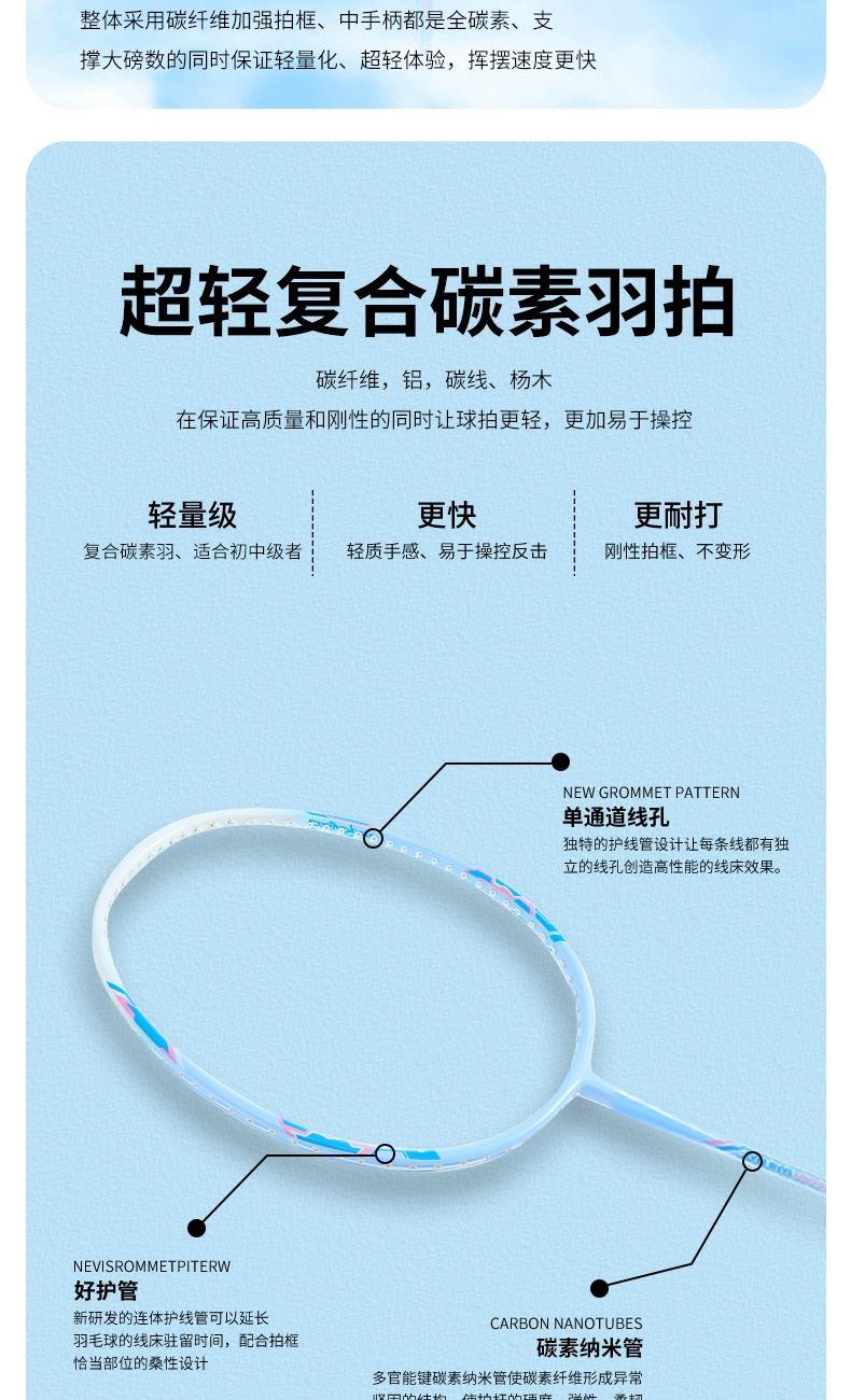 规格:马卡龙记忆碳羽毛球拍x2 、 双层牛津包x1 重量:0.38KG 材质:碳纤维、铝、 碳线、杨木 PVC