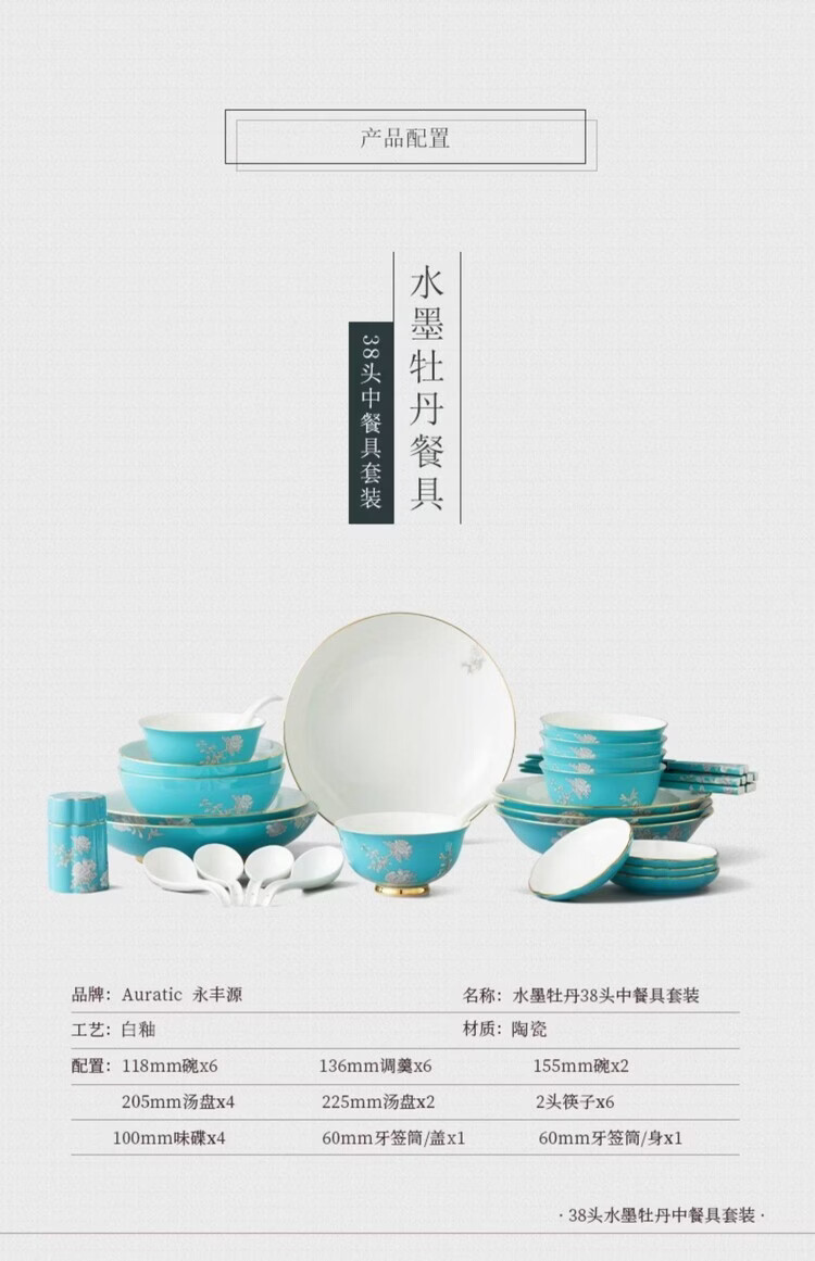 永丰源盛宴瓷·水墨牡丹-38头中餐具(6人位)