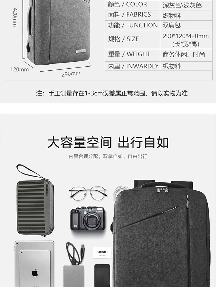 产品材质:织物料 产品颜色:浅灰色/深灰色(SL) 外观尺寸:290*120*420mm 产品容量:14L 产品条码:6958698313169 产品条码:6958698316313 装 箱数量:5pc