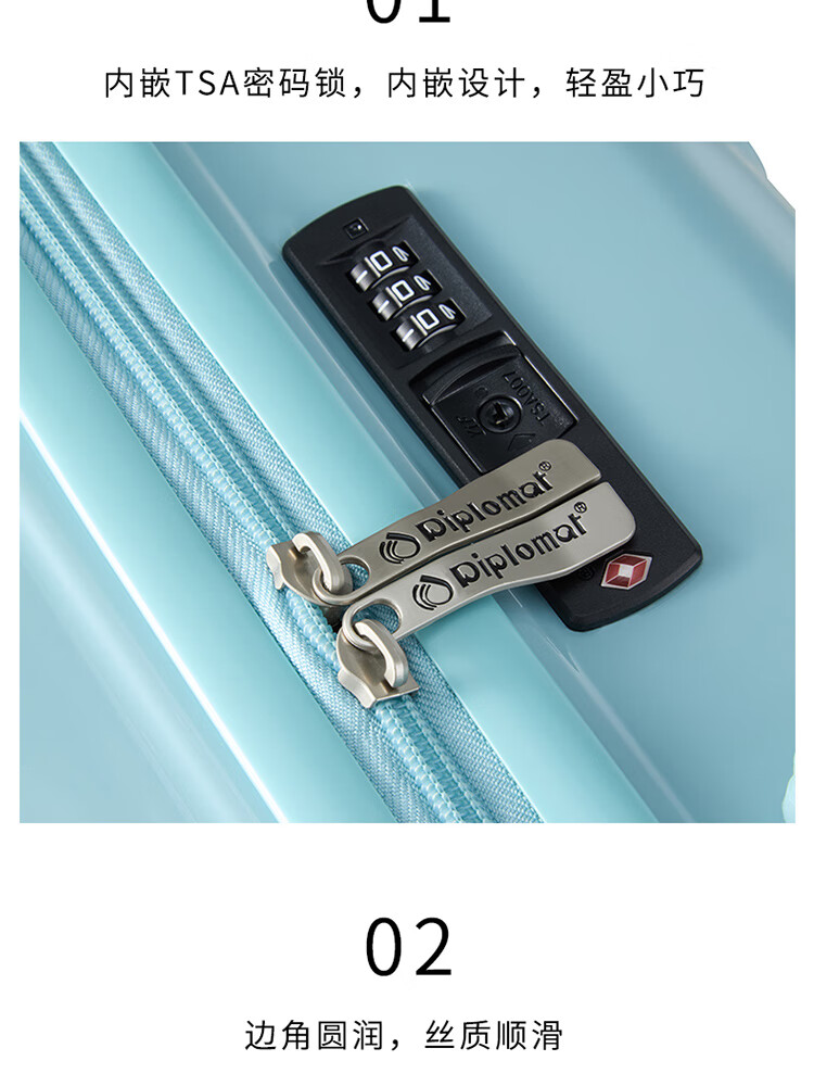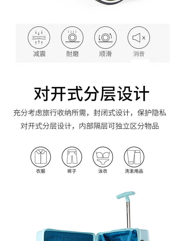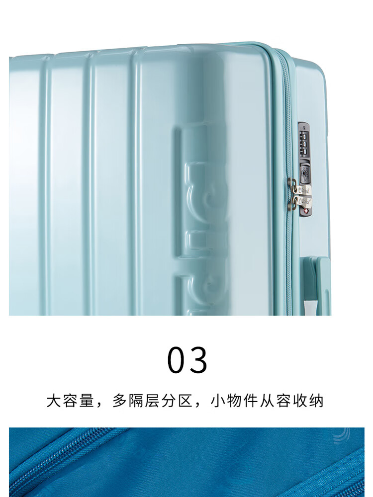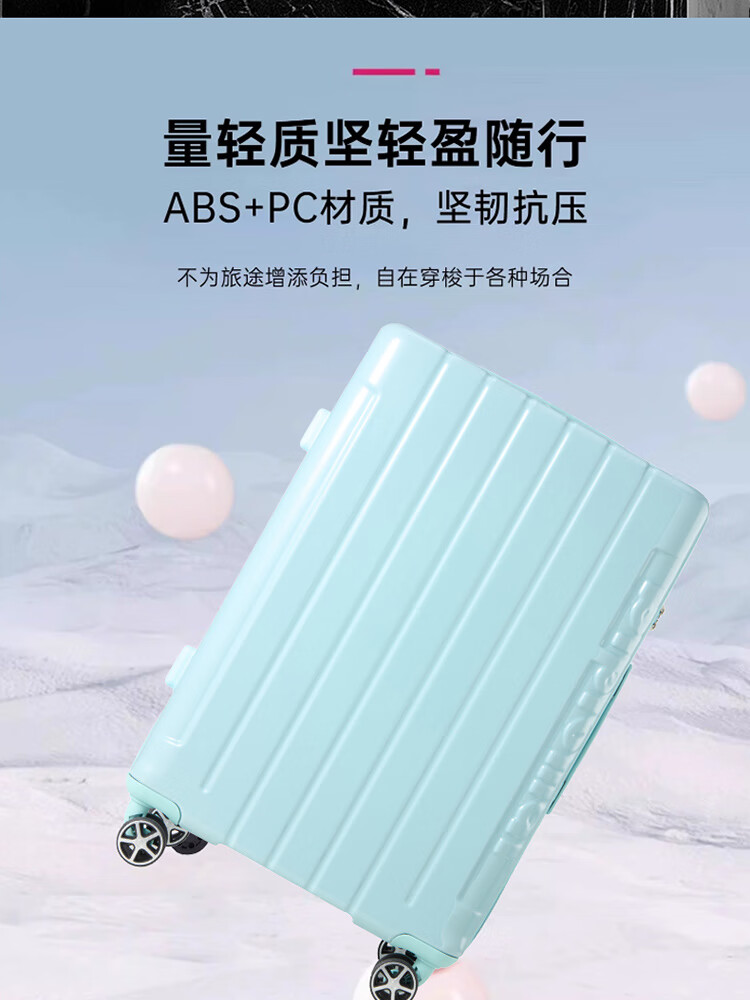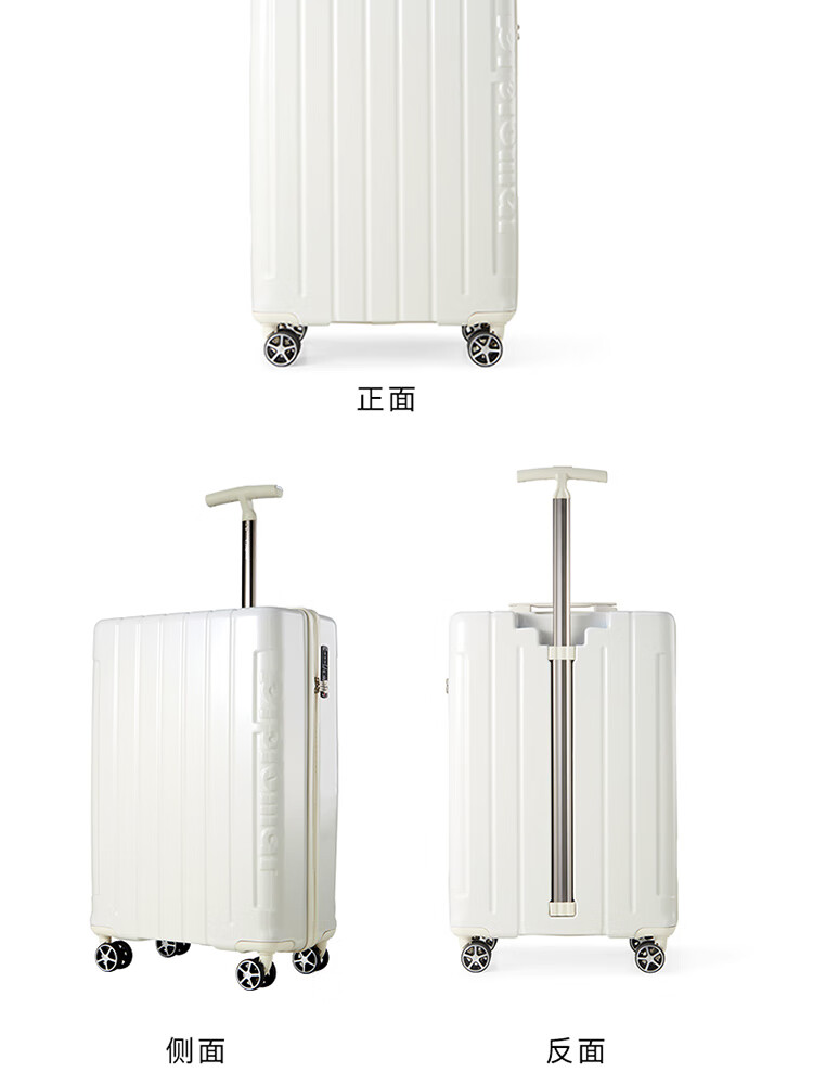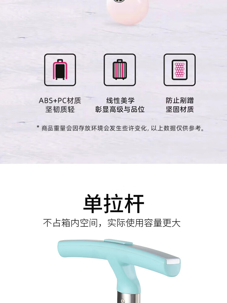 产品材质:ABS+PC 产品颜色:皓月白(-1)/湖镜蓝(-2) 外观尺寸:350*225*570mm /20英寸 产品条码:6958698324974 /20英寸