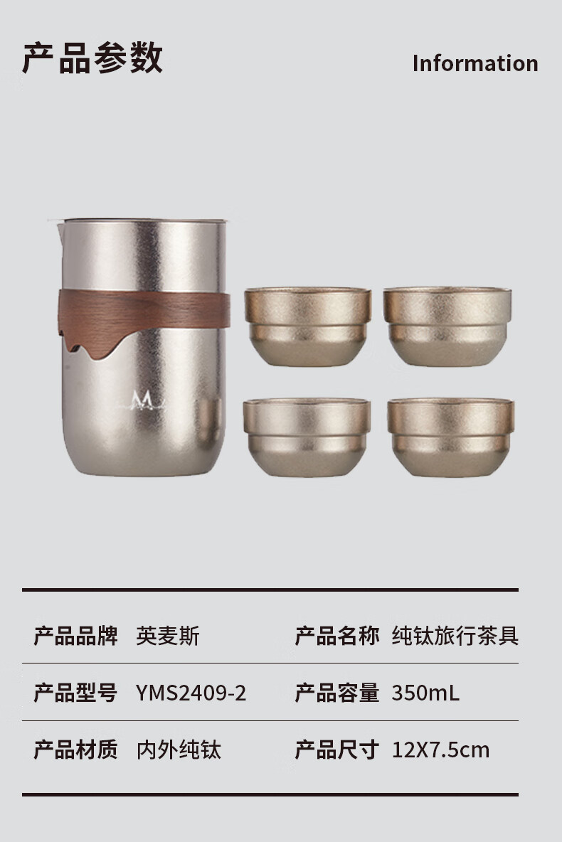 英麦斯纯钛旅行茶具YMS2409-2