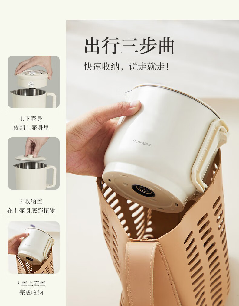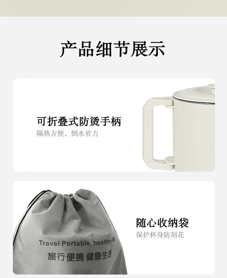 产品材质:ABS+PP+304不锈钢 额定容量:0.8L 额定功率:600W 额定电压:220V~ 额定频率:50Hz 产品重量:0.75kg 产品尺寸:170*135*190(mm) 彩盒尺寸:155*155*155(mm) 装 箱数量: 18 PCS 外箱尺寸: 470*470*330(mm)