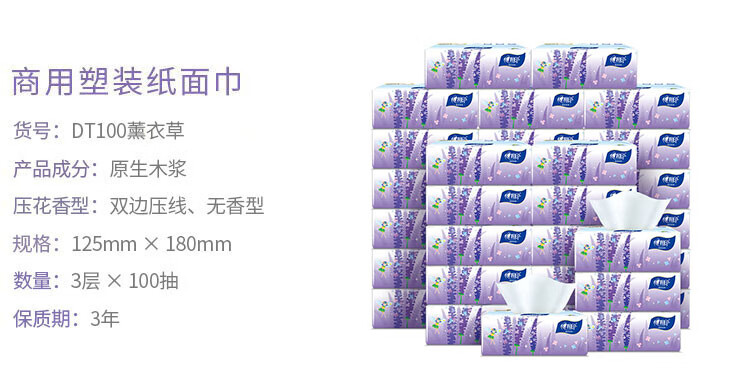 DT100商用(薰衣草)三层塑装纸面巾(21包)