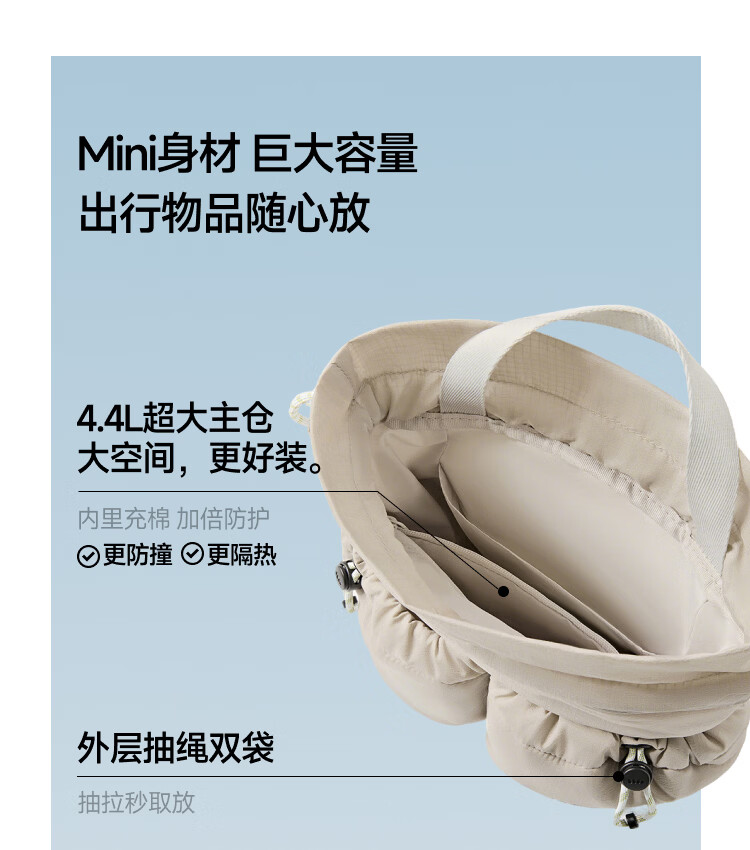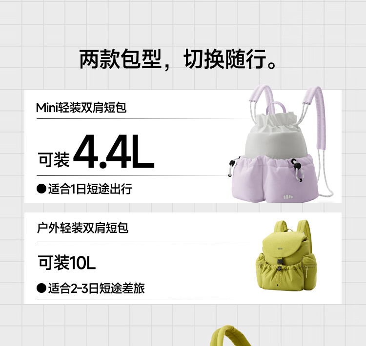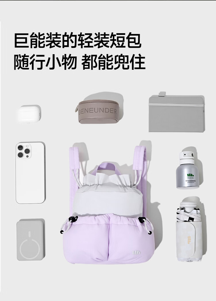 轻≈134g、出游通勤一包搞定mini身材巨大容量、出行物品随心放全新短巧包身结构、搭配有型轻松随行