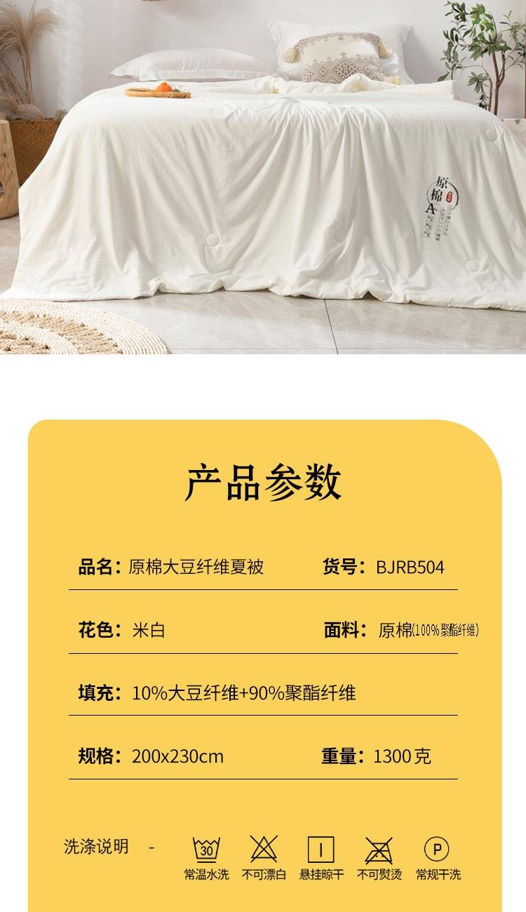北极绒BJRB504原棉大豆纤维夏被-米白200x230cm