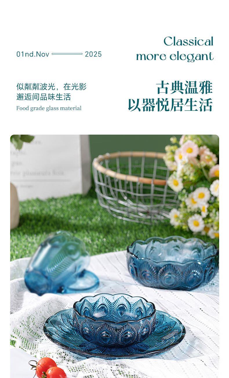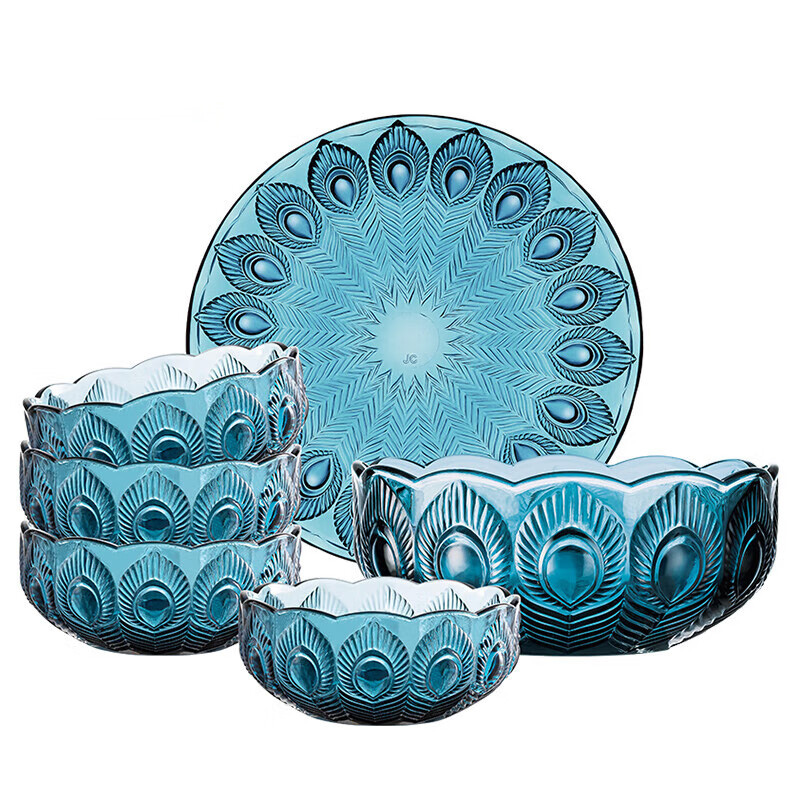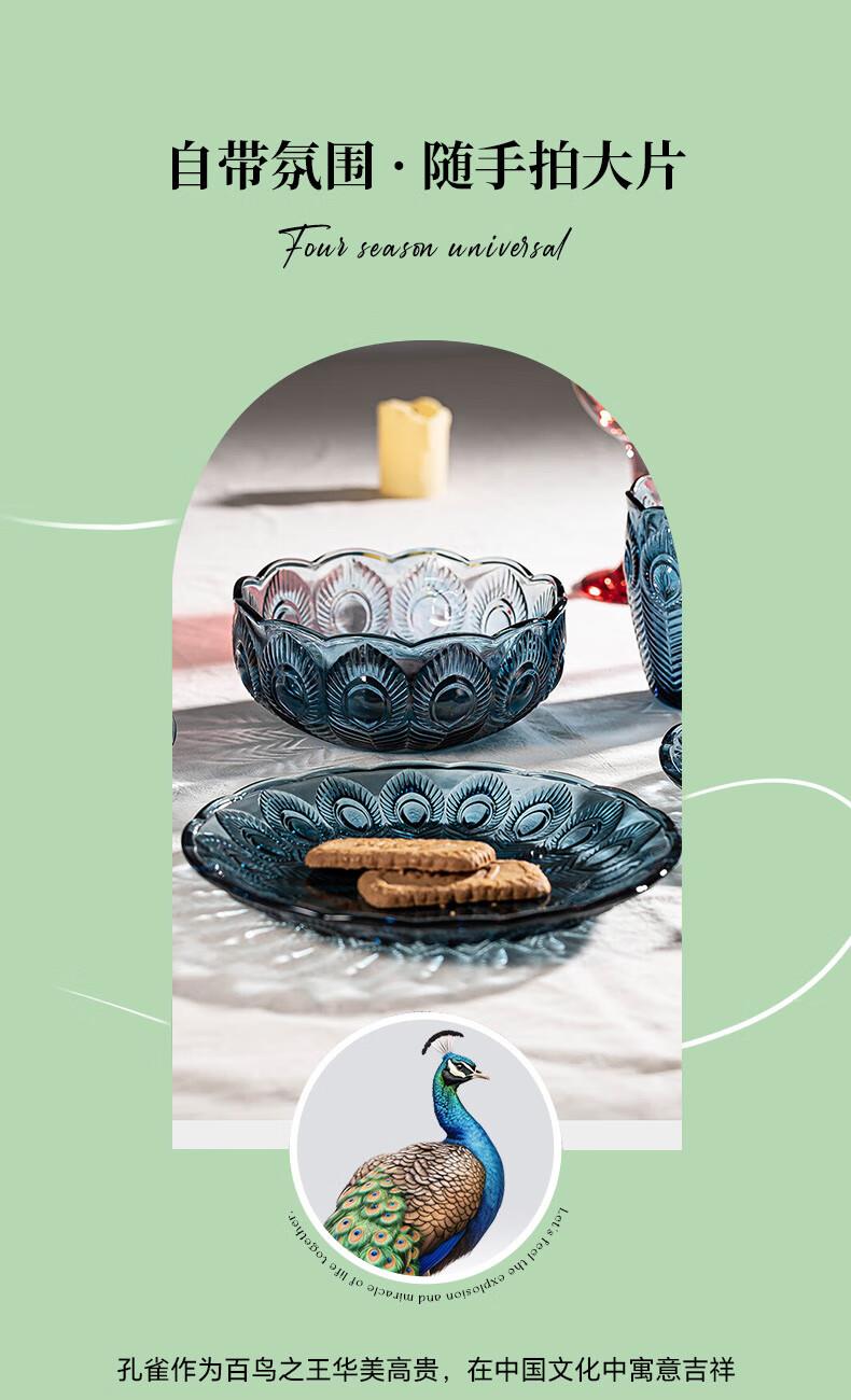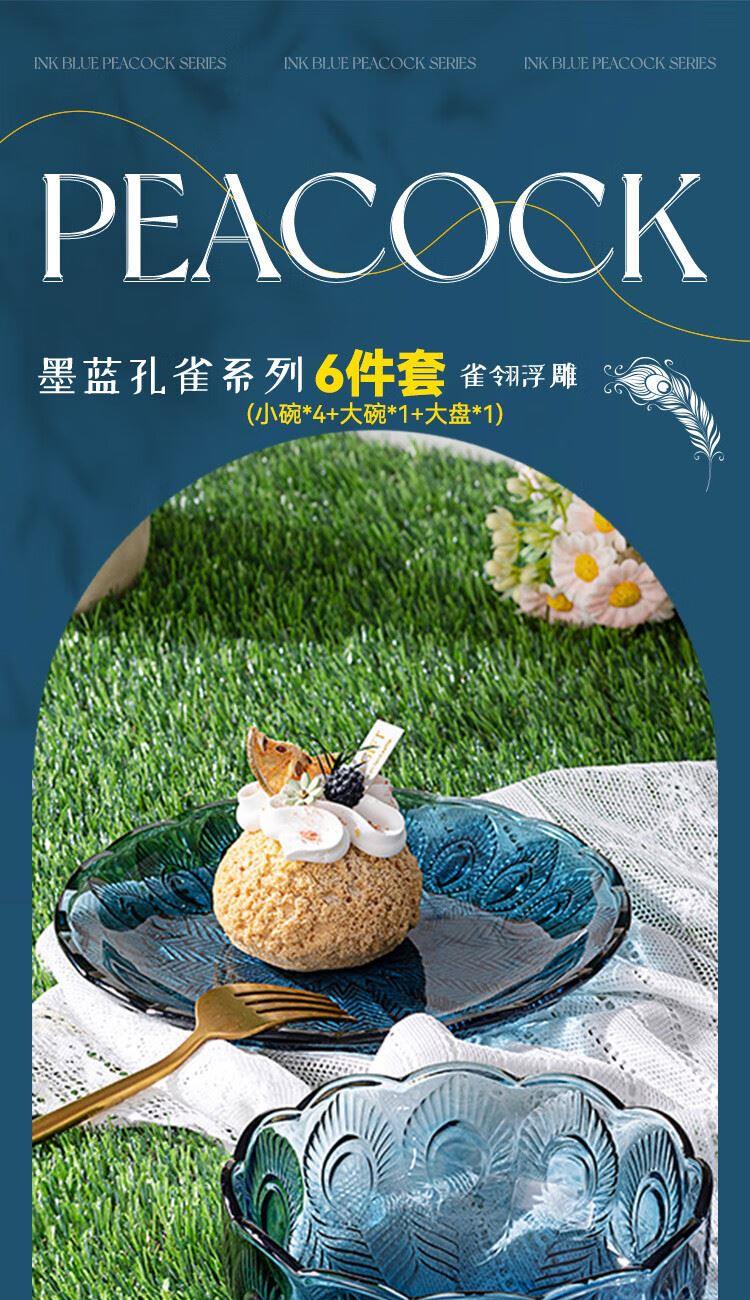 乐唯诗KQWPB/L8墨蓝孔雀碗盘杯八件套