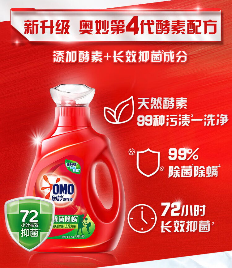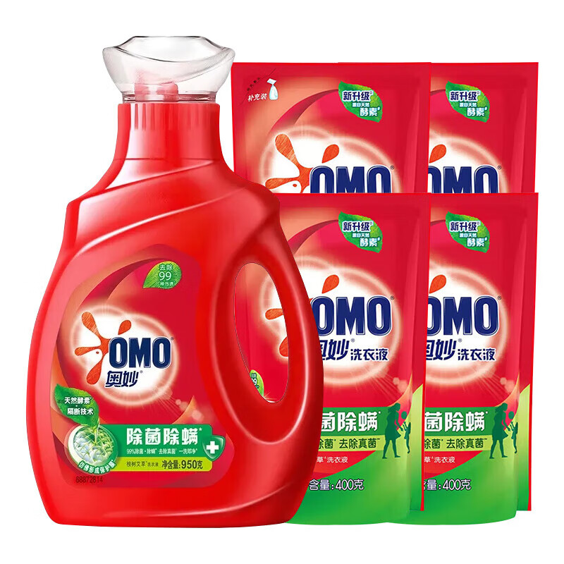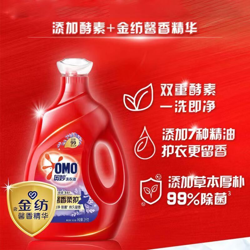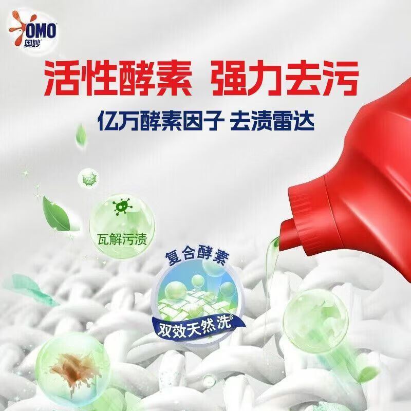 【套装配置】(香型随机/新老包装随机) 1.奥妙除 菌除螨天然酵素洗衣液950g*1 2.金纺持久留香清新柔顺护理液400g*2 3.奥妙高效去重油洗洁精480g*1 4.DDOXOO爆炸盐彩漂粉50g*1 5.繁花系列精美彩盒*1