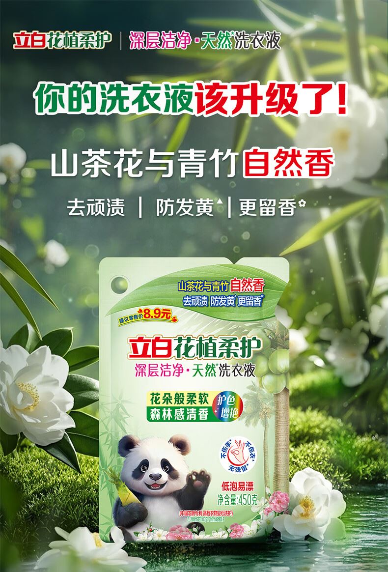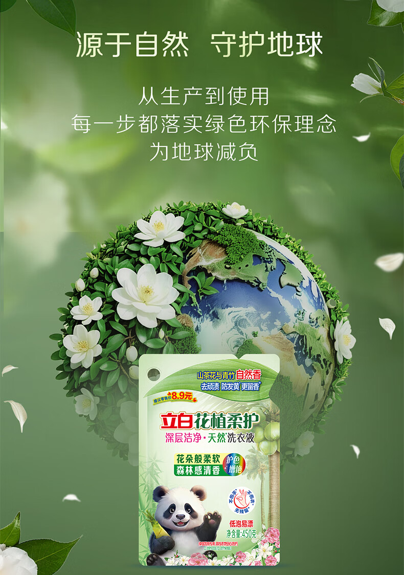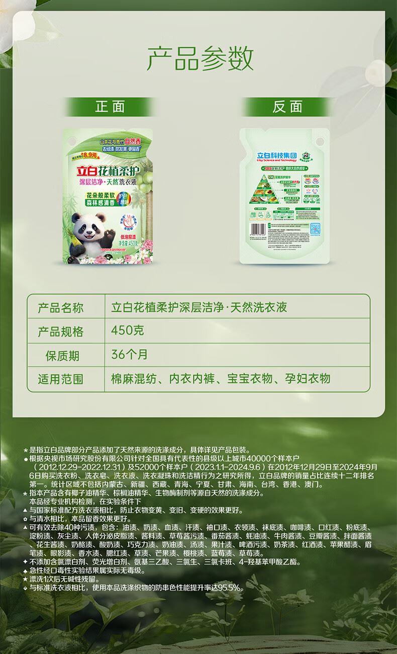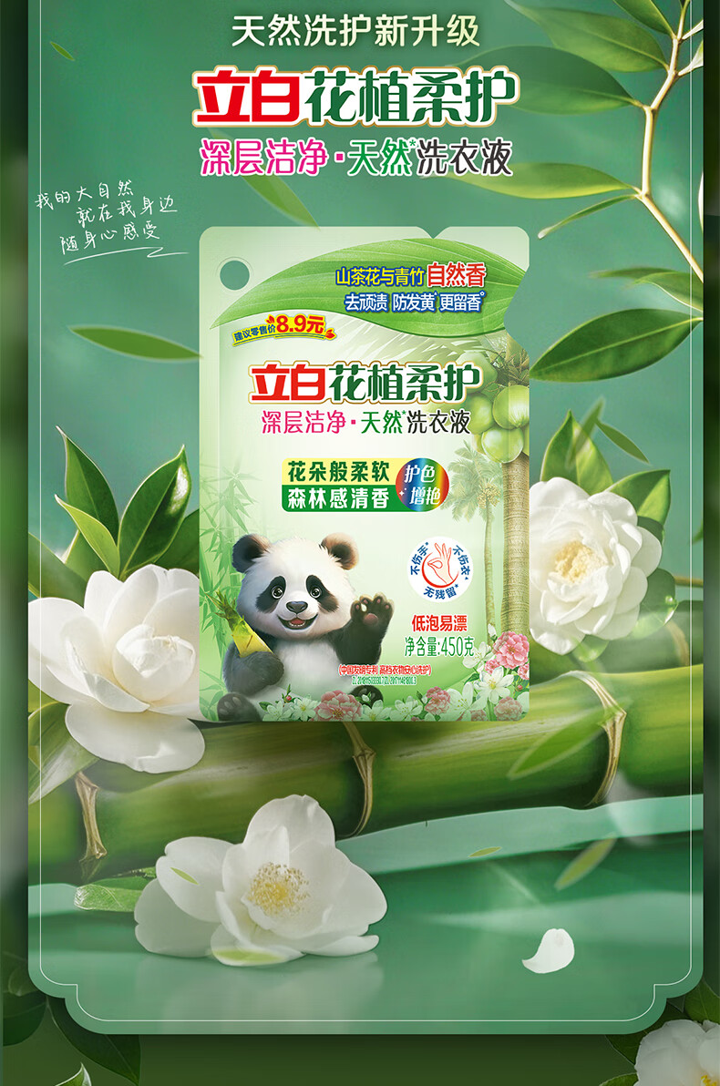 立白花植柔护深层洁净天然洗衣液450g袋装