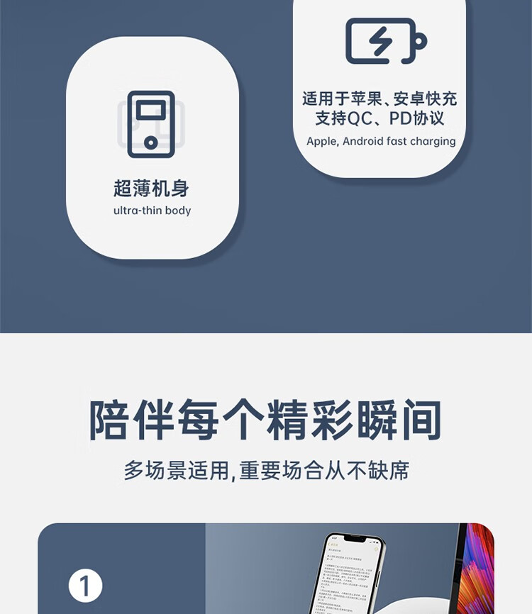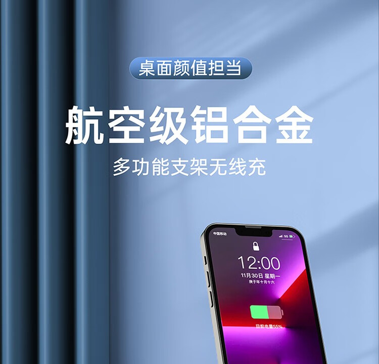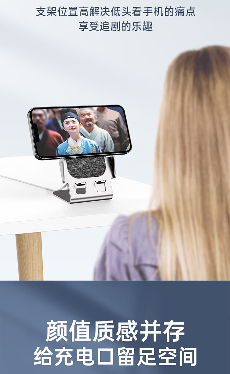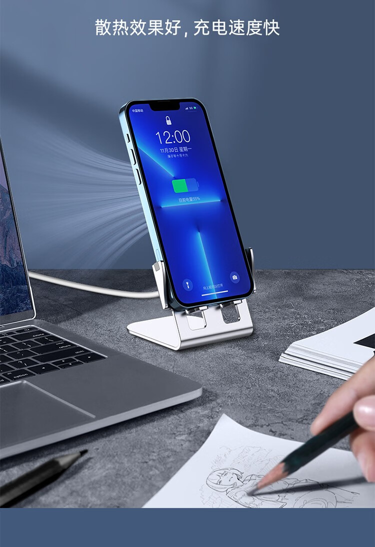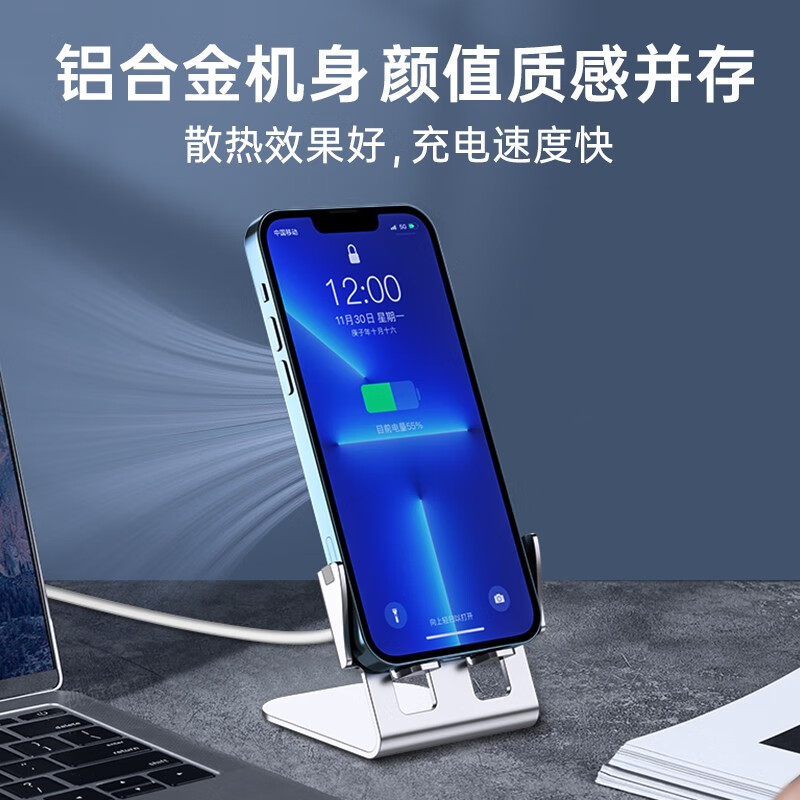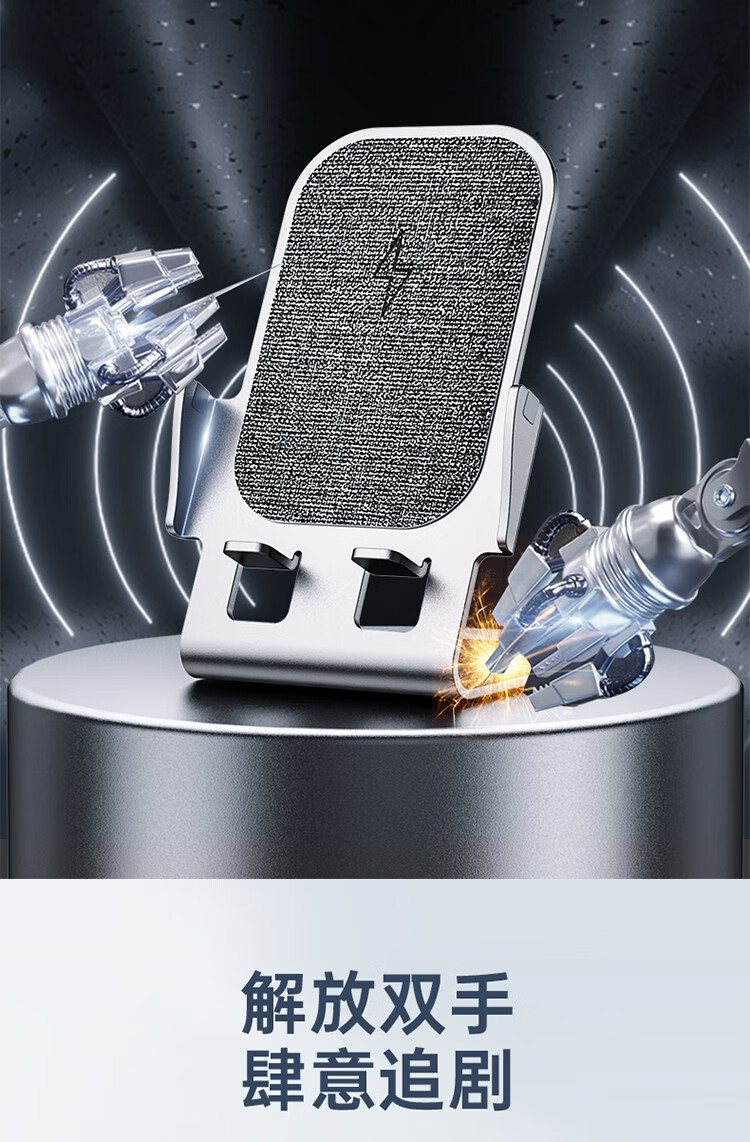 型号:W01 颜色:灰色(银/蓝/粉色1000起订) 材质:铝合金+PU布纹 手机充电功率:5W/7.5W/10W/15W 输入功率:5V⎓2A/9V⎓2A 输入接口:Type-C 产品尺寸:138*95*118mm 包装尺寸:90*156*109mm 产品重量:180g