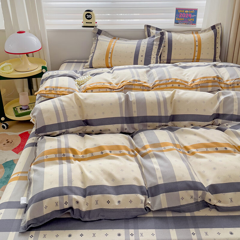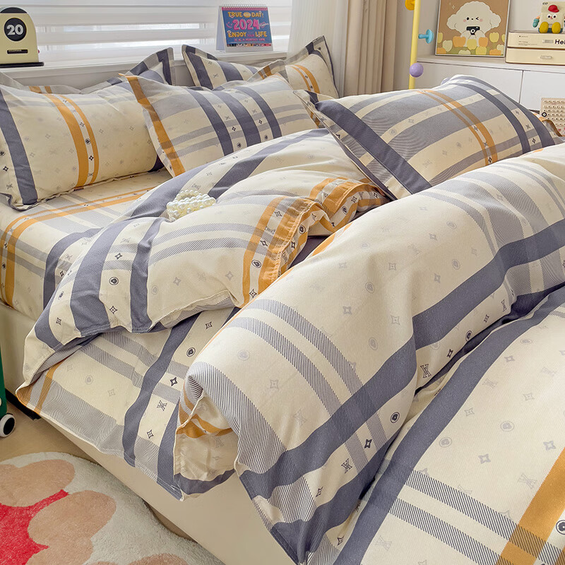 皮尔卡丹莱克卡其磨毛四件套