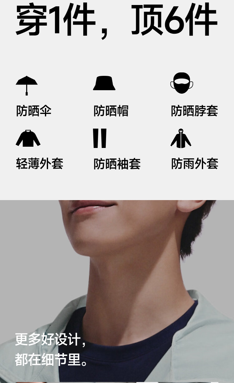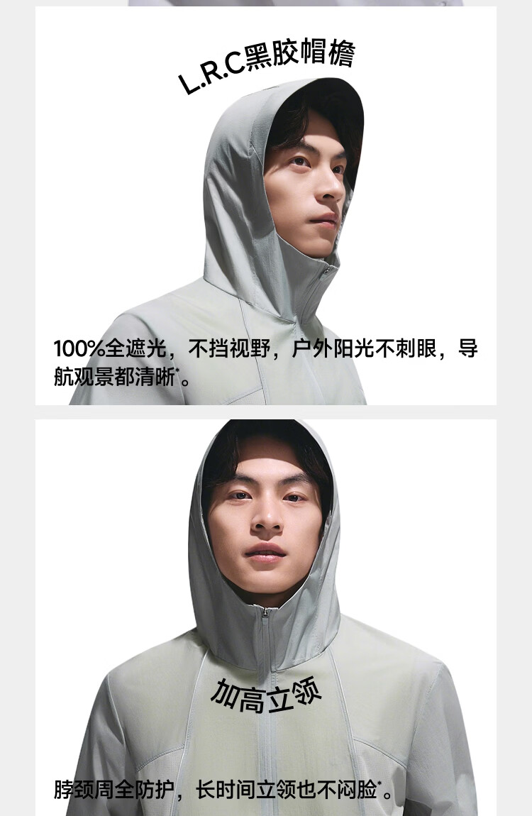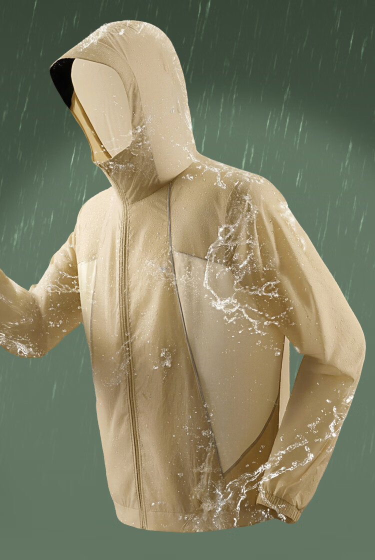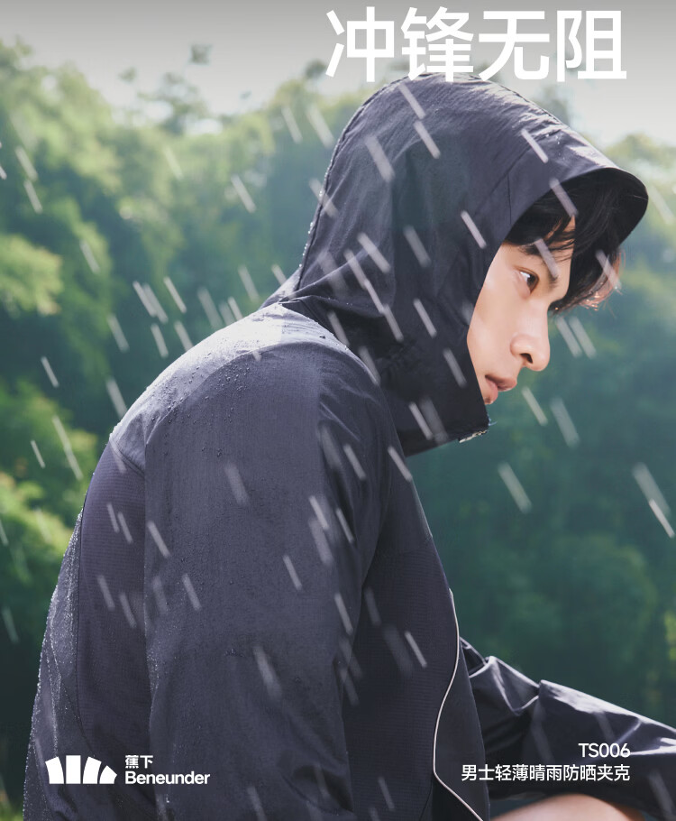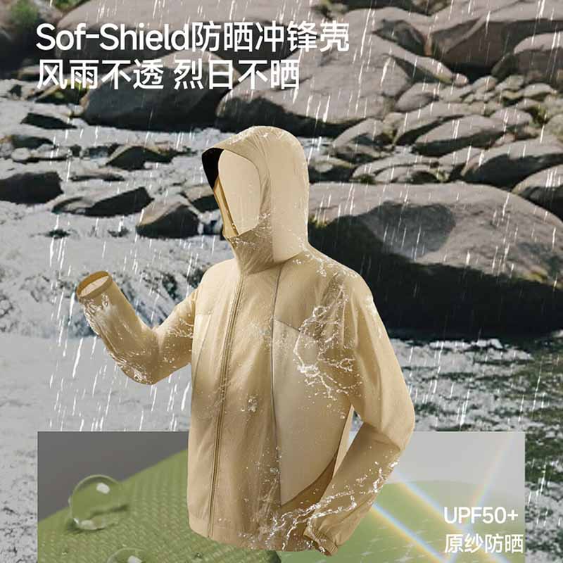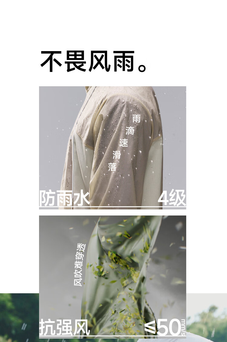 UPF50+、晴雨干爽防晒衣、一件抗住户外雨水日晒细雨突来滴水难漏不易湿、空气轻薄久穿无负担包容身型挺阔硬朗