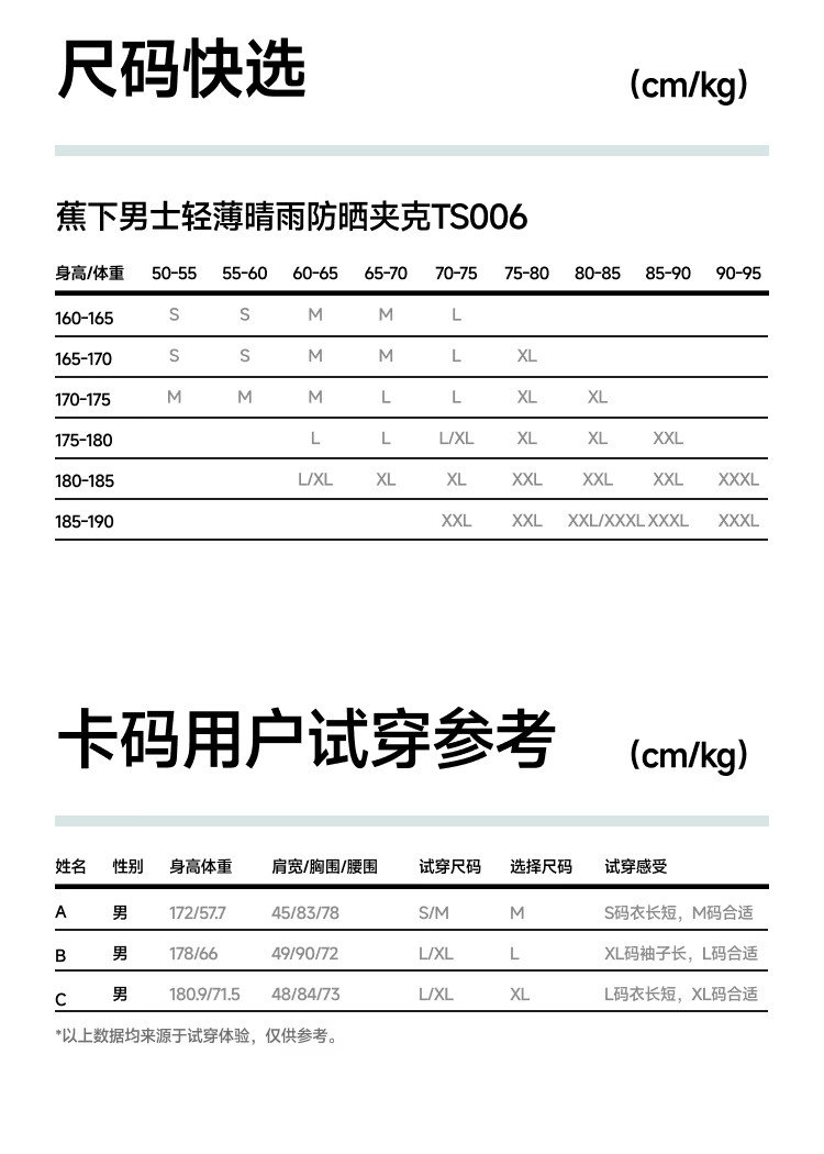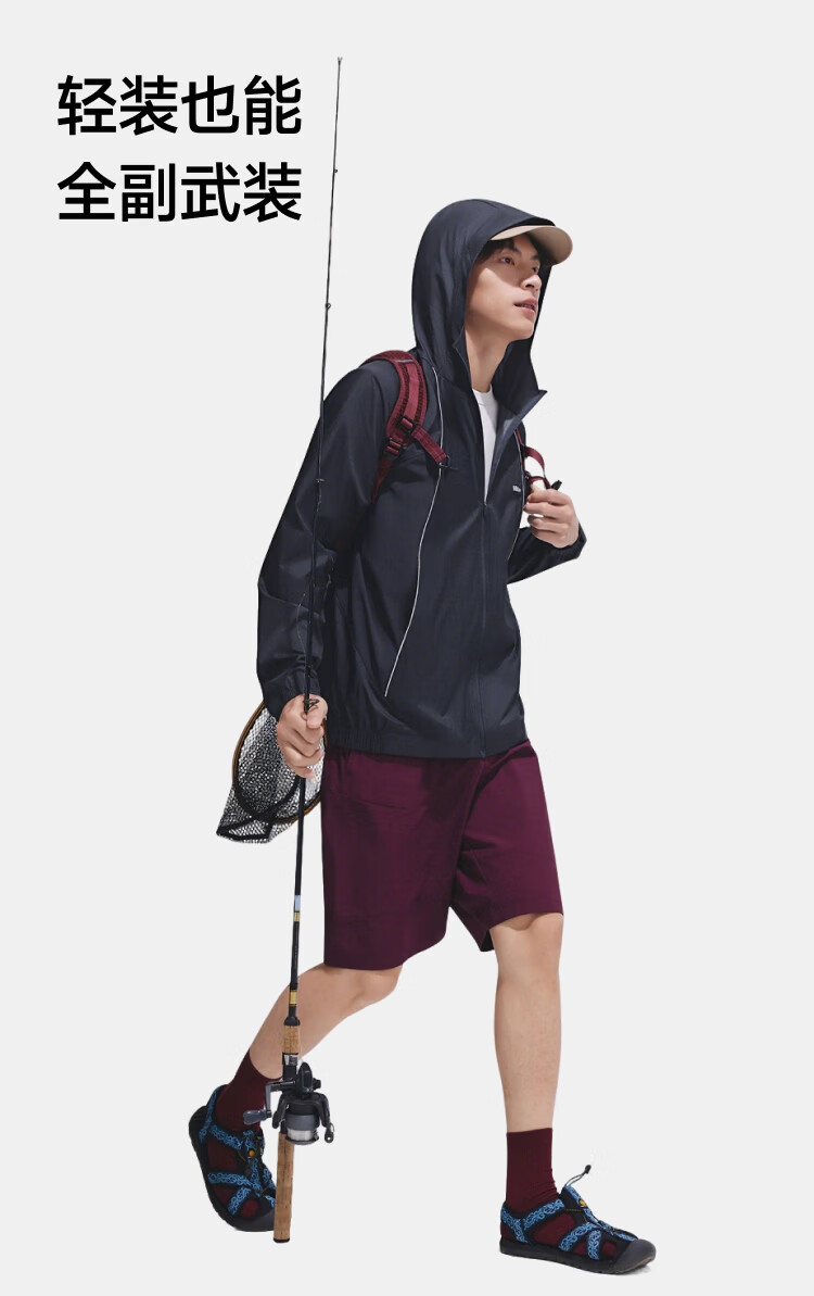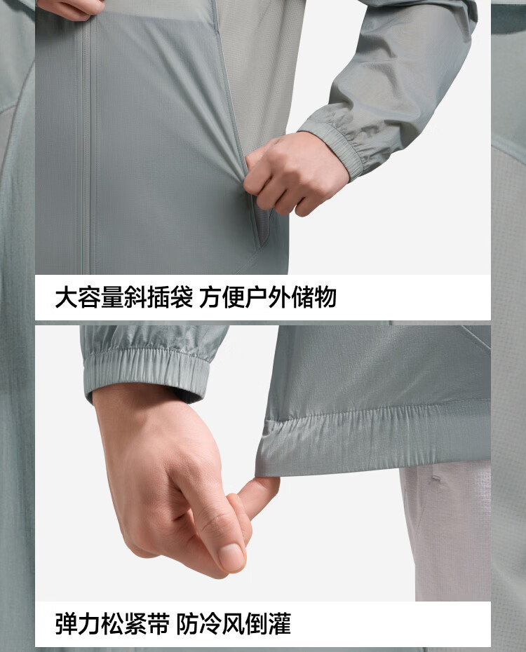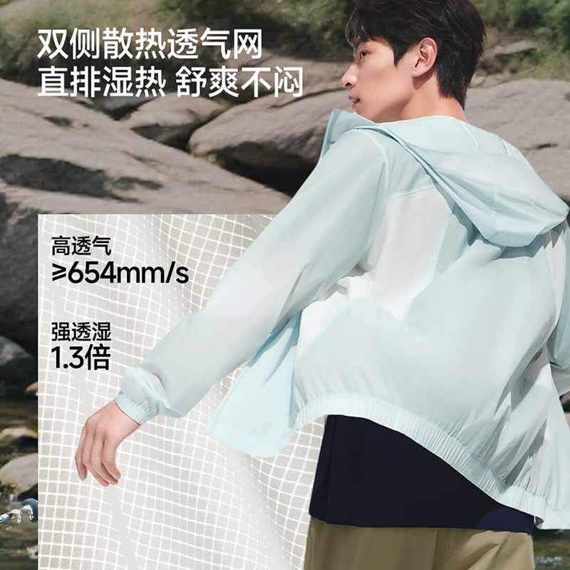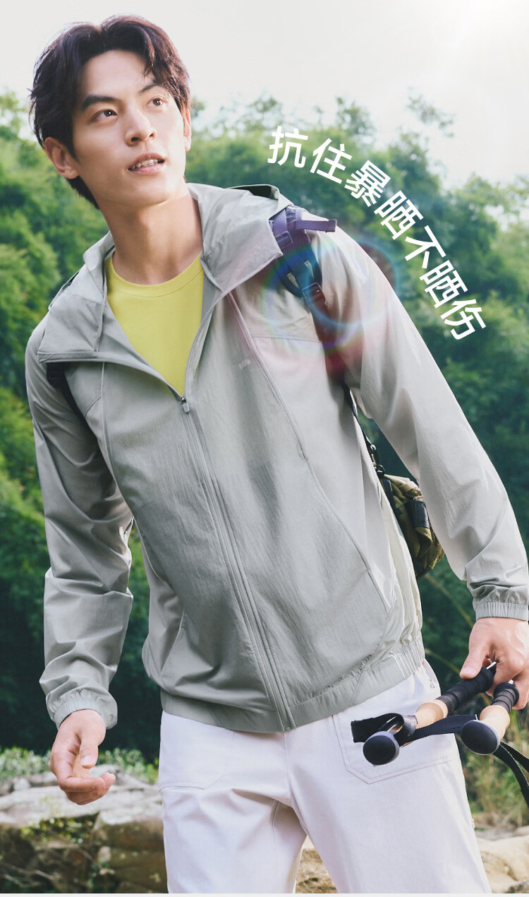 UPF50+、晴雨干爽防晒衣、一件抗住户外雨水日晒细雨突来滴水难漏不易湿、空气轻薄久穿无负担包容身型挺阔硬朗