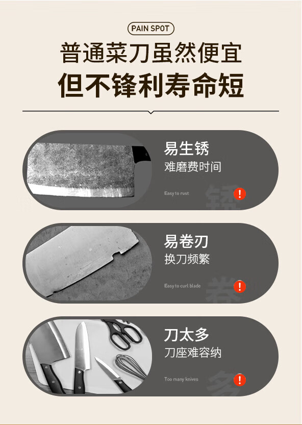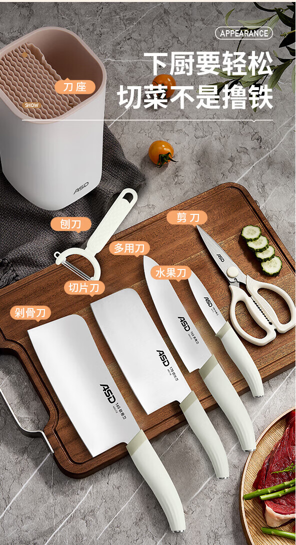 材质 - 40CR13精钢 规格 – 砍骨刀、切片刀、多用刀、水果刀 剪刀、刨刀、刀座 内箱 - 197x152x325mm 外箱 - 197x152x325mm 装 箱数- 8pcs/箱 净重 – 13 kg 毛重 – 14 kg