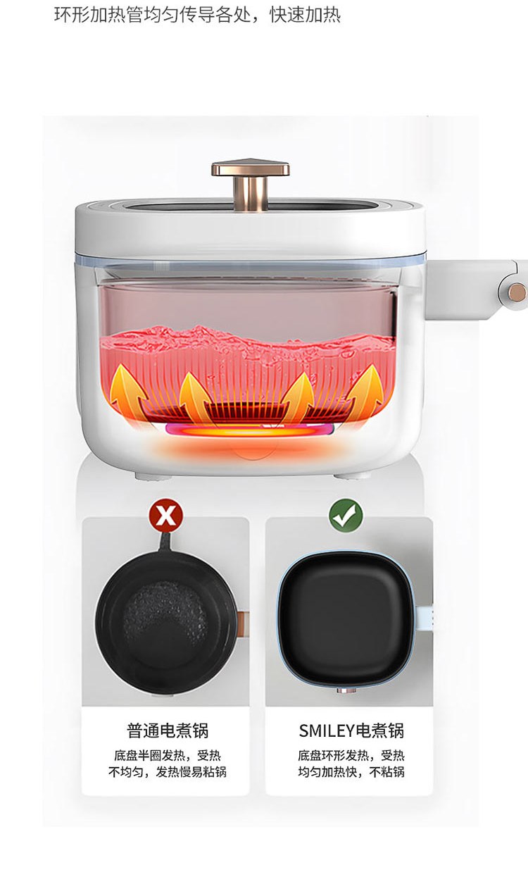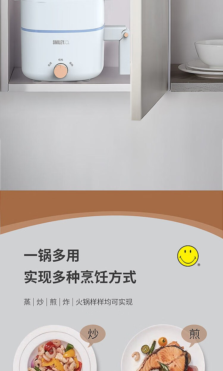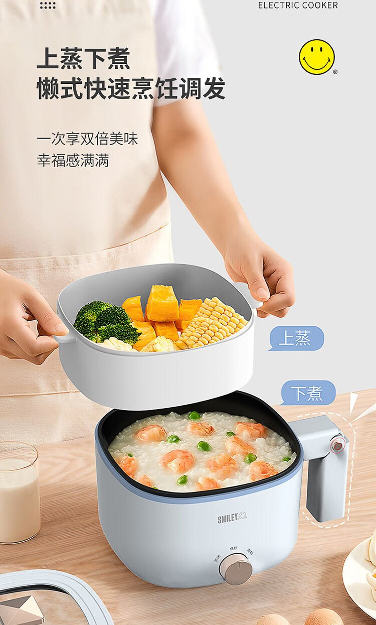 京东sku:100091251499 SMILEY多功能电煮锅 蒸煮一体1.6L容量 SY-HZG1601