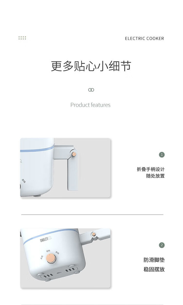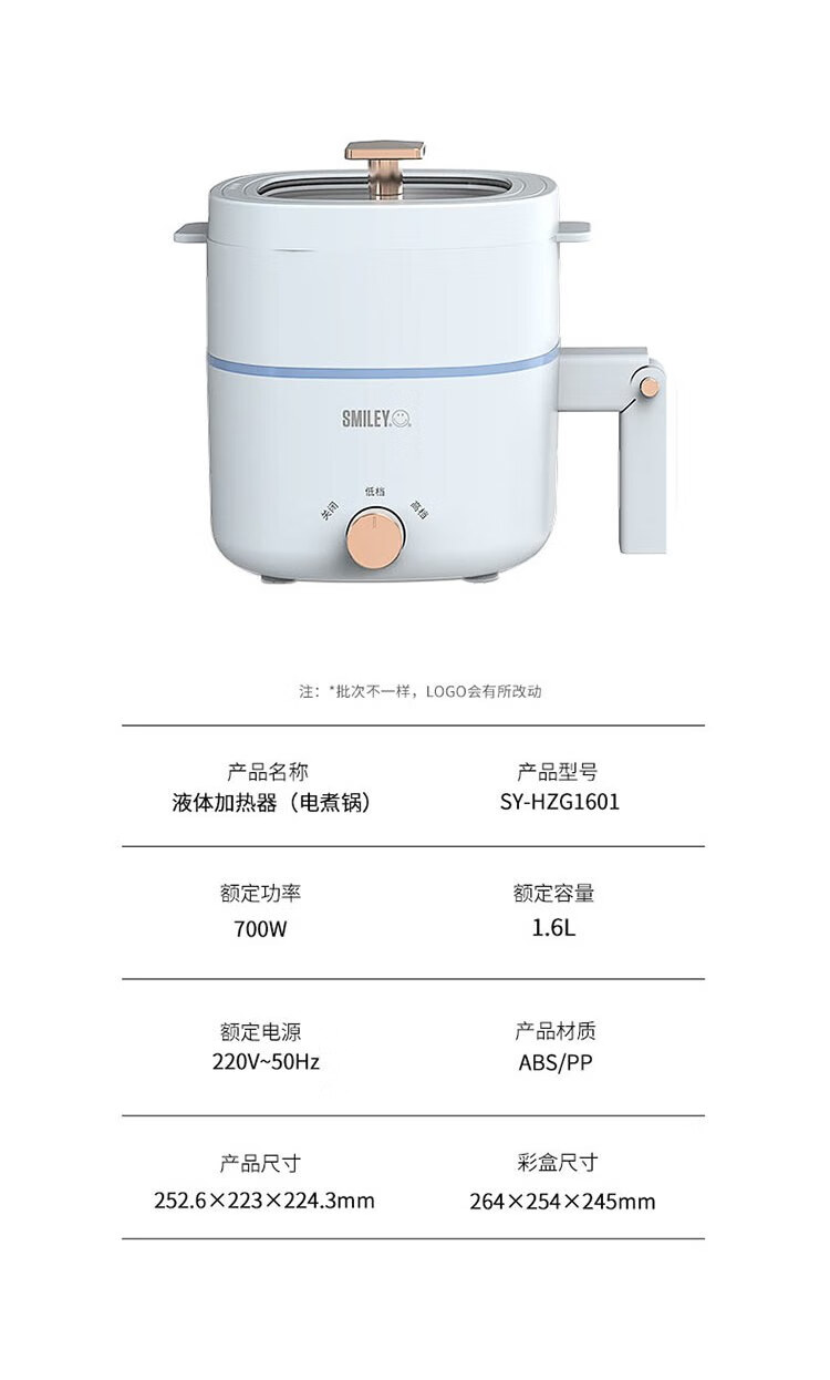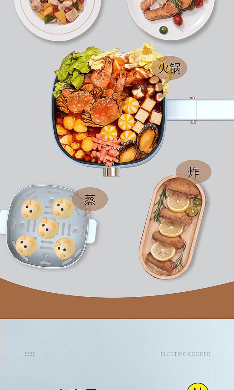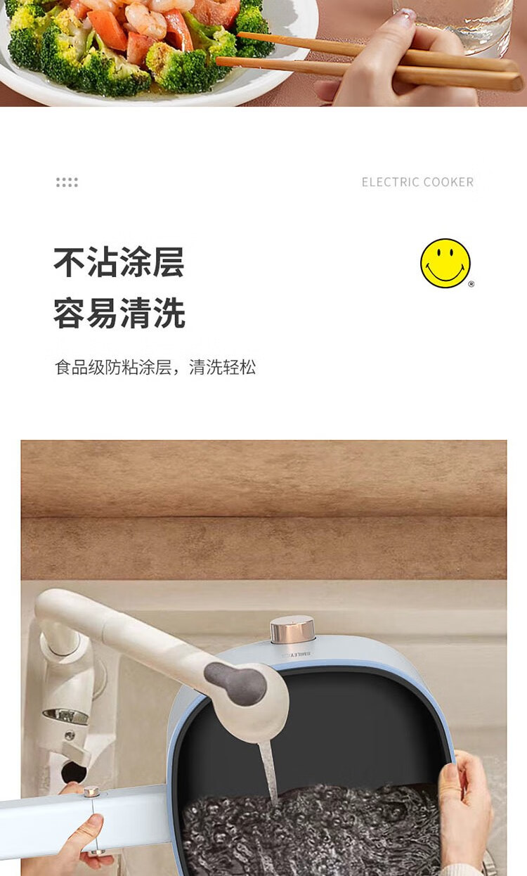 京东sku:100091251499 SMILEY多功能电煮锅 蒸煮一体1.6L容量 SY-HZG1601