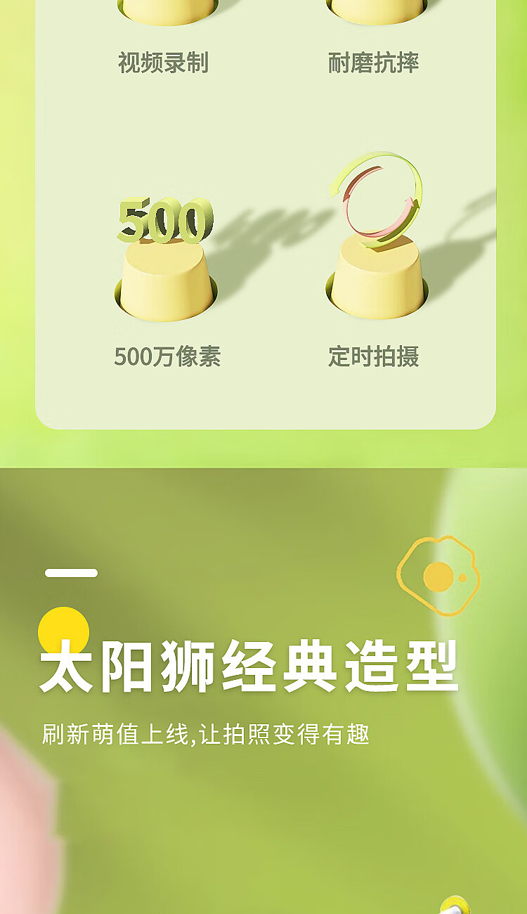 拍照相素:4800W 视频分辨率:1920*1080 产品尺寸:95*58*60mm 彩盒尺寸:125*112*62mm 电池容量:400mAh 产品重量:173g 支持内存:自带存储,可扩展 充电电压:DC5V/1A 商品条码:6971070040552