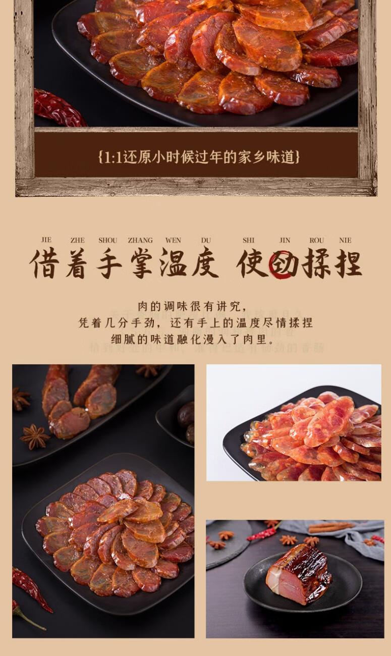 农家土猪烟熏麻辣香肠200g 农家土猪烟熏腿肉300g 农家土猪五香香肠200g 樟茶鸭600g