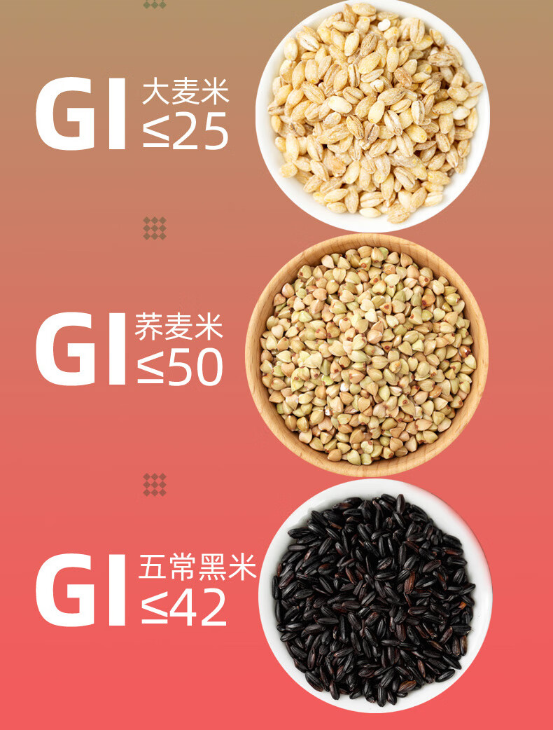 低GI混合杂粮1kg(五常黑米、大麦米、荞麦米、燕麦米、五常糙米)