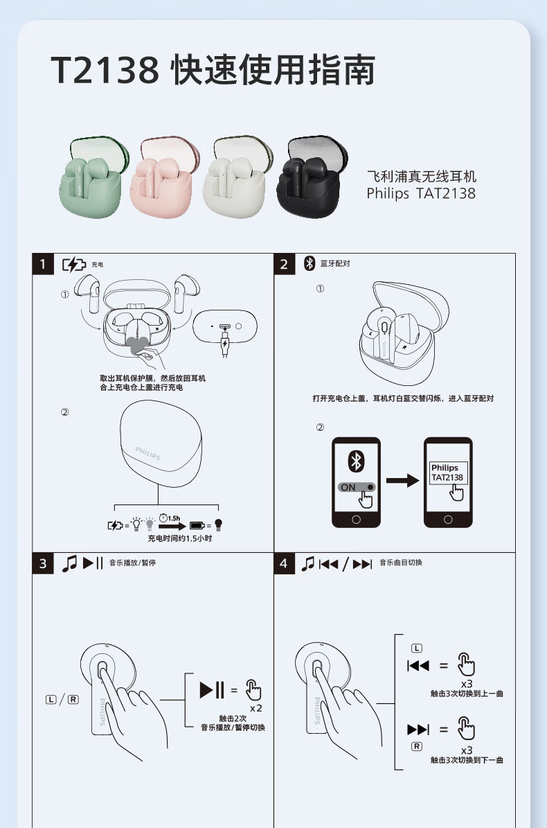 飞利浦(PHILIPS)TAT2138 真无线蓝牙耳机