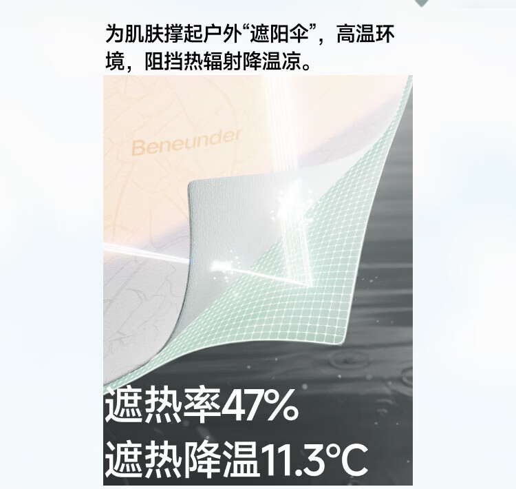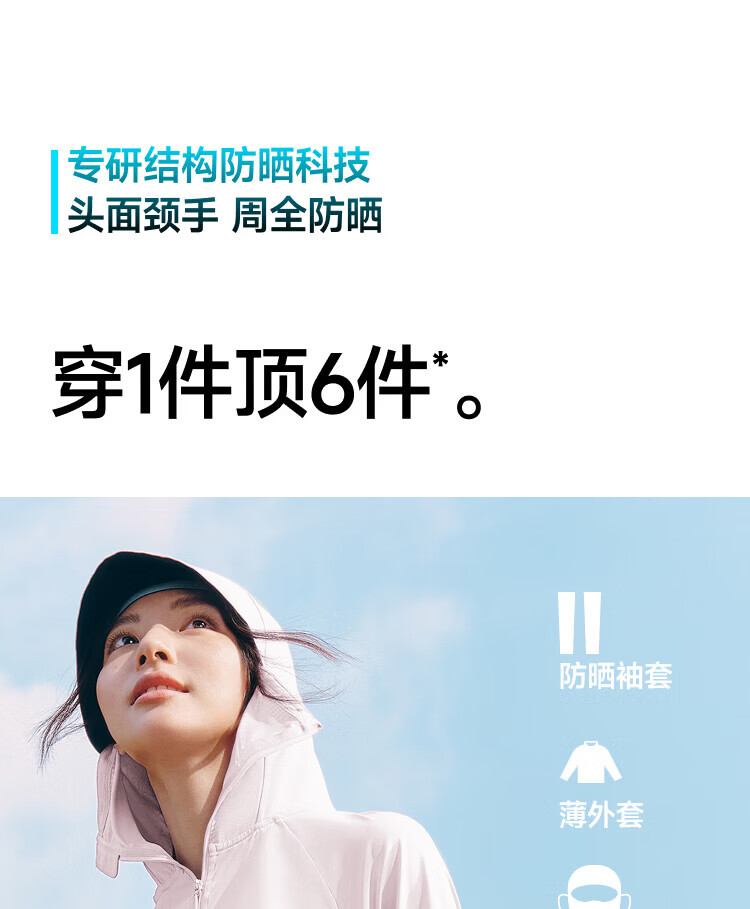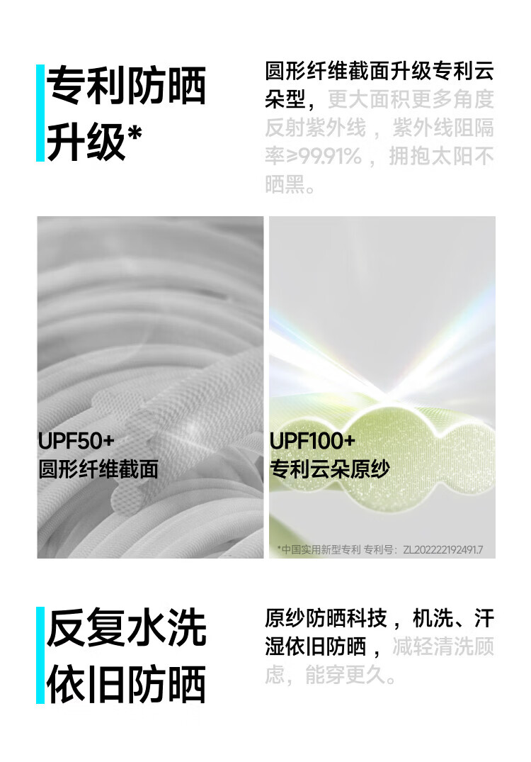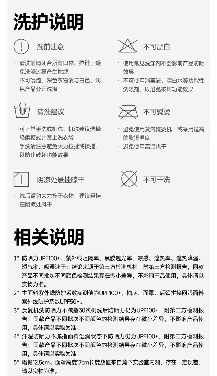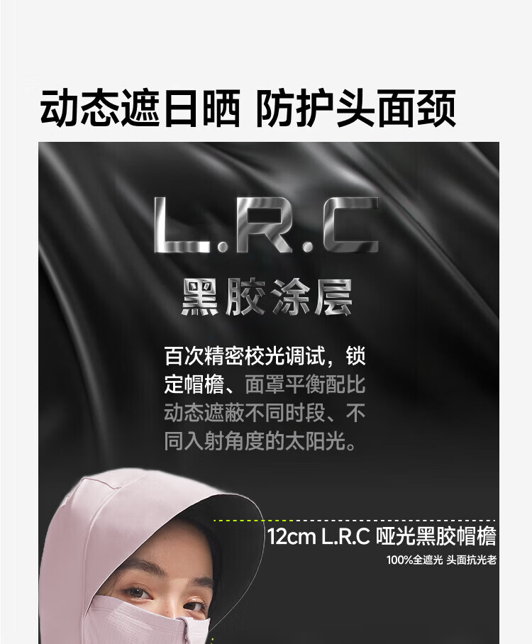 140%国标凉感系数、久洗久晒、依旧凉快 UPF50+、云朵原纱防晒、阻隔>99.5%紫外线 全遮光黑胶帽檐、头面颈一体防晒